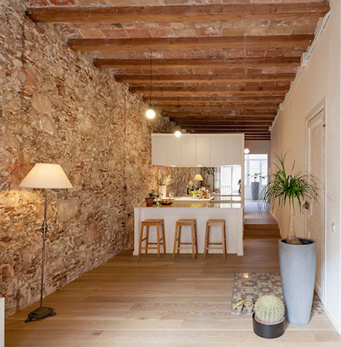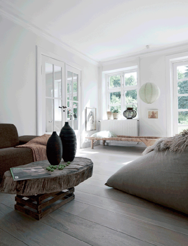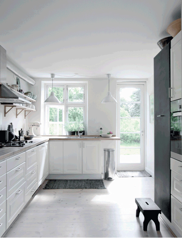 I am up to my eyeballs in paint as I work on transforming my living room, and I would just like to say thank you to all those who told me to lose the mahogany trim. While I am still not sure about my entry way (where the majority of the wood work is) I am really happy to see the mahogany gone in the living room. I still have alot of work to do but photos to come ASAP. During a short break yesterday while working on the trim, I came across these 2 residences that I fell in love with. The first is a beautiful old farm in Denmark that has been totally renovated and filled with flea market finds. It has a really lovely neutral colour palette. (Via Femina) The other is a small apartment in Barcelona that used to be a series of dark, cramped rooms. Sergi Pons Architects created an open floor plan and inserted a white cube in the centre to house the kitchen and bathroom. Such stunning original stone walls and ceramic tile ceiling, and the result is a successful marriage of modern and rustic. (Via Living)