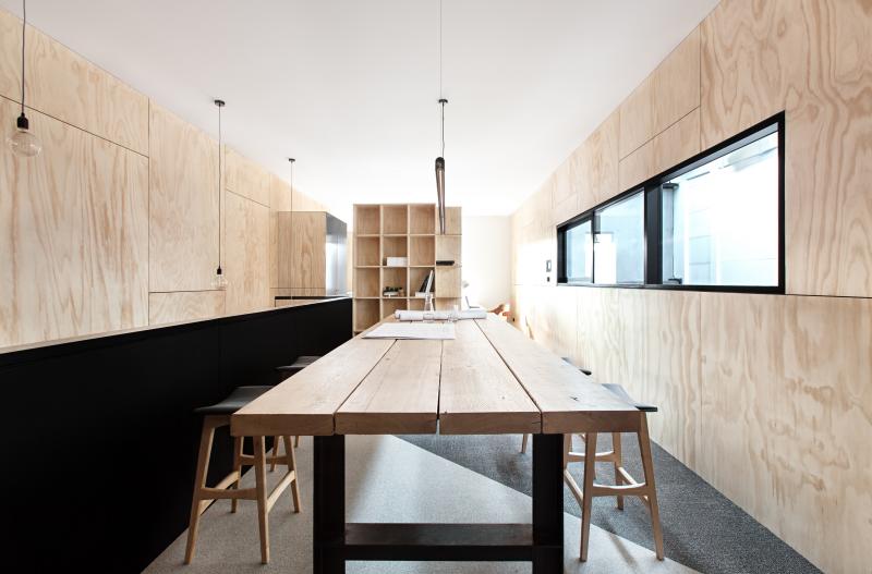 You’ve heard me lament before about working on a weekend. It’s still true that I’d be a lot happier if I could spend the day in a work place as stylish as this. The joy of joinery. Plywood pleasure. Shiver. Mil Constructions’ warehouse, workshop and office by Doherty Design Studio.