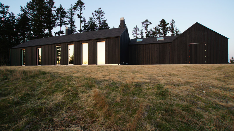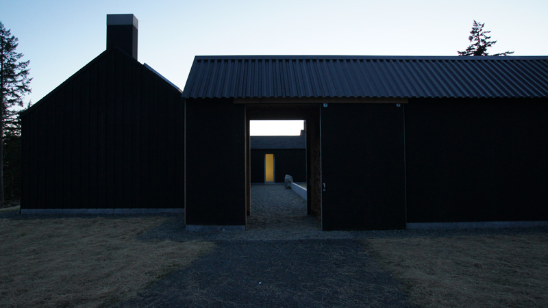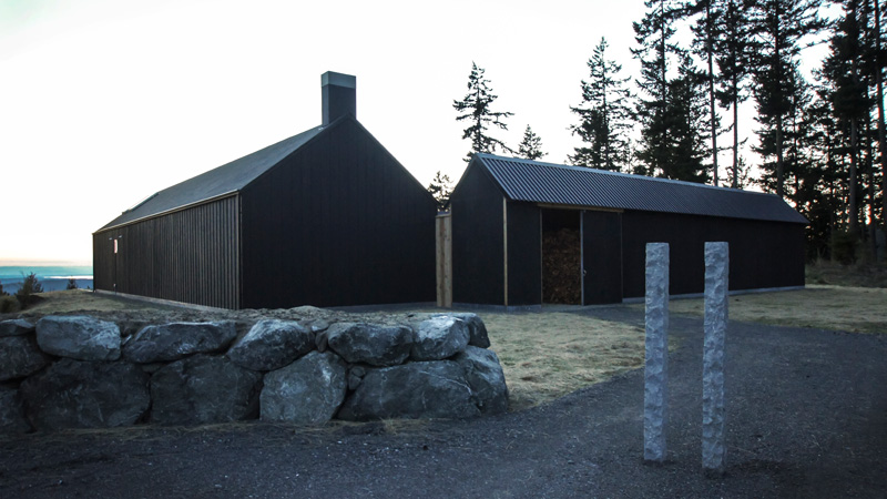The folks of Seattle architecture firm atelier drome shared with us this incredible home they designed. Located on Orcas Island (just north of Seattle), it was created for their artist client as a home and studio…to serve as a quiet retreat, disciplined working environment, and with low energy needs, all within a strict budget. The main house is essentially one large space divided by a utility cube – the kitchen, bath, and pantries. The living space is on one side of the cube, the bedroom on the other. On the west side of the space, floor to ceiling glass doors create slices of views across the archipelago. The east side has small high windows to create summer ventilation and morning light in winter. The studio is also composed of a large space divided by a utility core. However, here the focus is decidedly inward with no windows. A skylight filled vaulted ceiling keeps the space bright and light filled. Could I ever get my art on in this gorgeous space!!