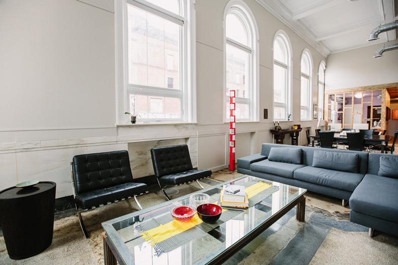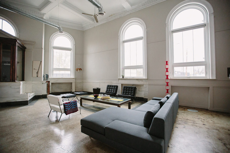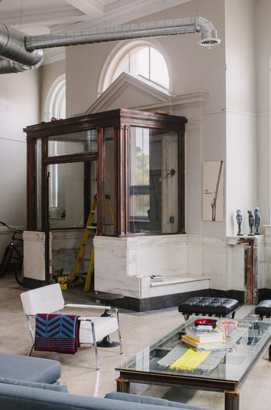 Typically if Jo and I feature a conversion, it is of a church, or a barn. This time I have one that is a little different. It is a former bank in Detroit – a stunning structure, despite copious amounts of graffiti (so sad). The openness, the vestibule, the windows, and OMG the potential on the roof! I would live here in a heartbeat (if the ‘hood isn’t too sketchy). Thanks Suzanne for the link! (via, photos by Michelle and Chris Gerard
