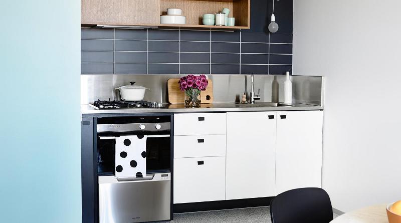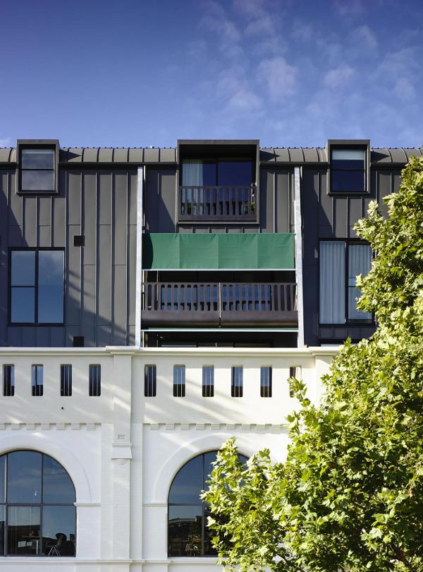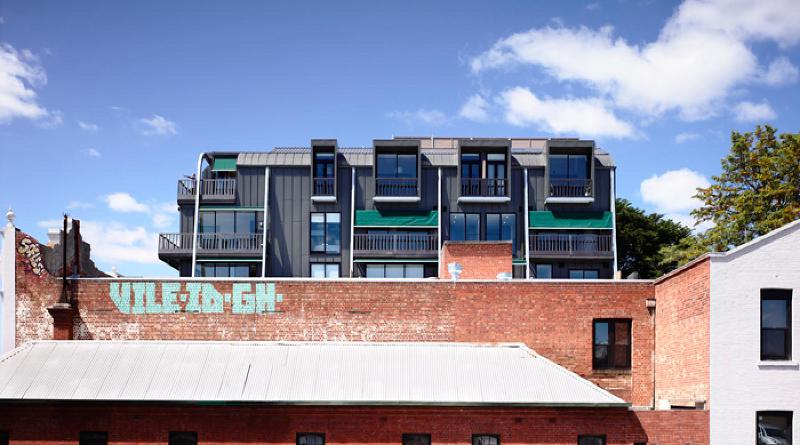 Perched on the roof of an Edwardian era building are 15 new apartments, 231 Smith Street, Fitzroy by developer Neometro in collaboration with MAArchitects and Grant Amon Architects. While old meets new on the exterior inside while pastel hues are wed with wood. Light, bright, contemporary style in small space living.