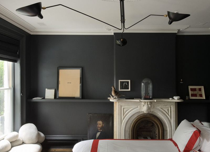 This makes me want a black bedroom desperately. Throw in a gorgeous marble fireplace and a Serge Mouille light and I would never ever get out of bed.