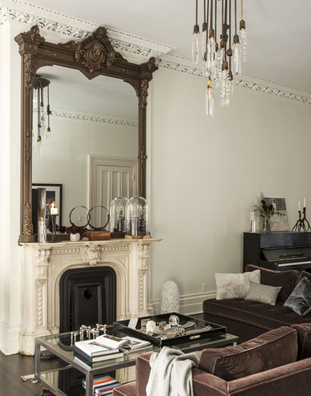 I swear I have been staring at this photo for 10 minutes. What a dreamy space. The fireplace, moldings, and mirror are to die for, and then add in that velvet sofa…*SIGH*