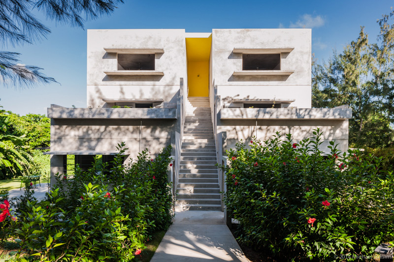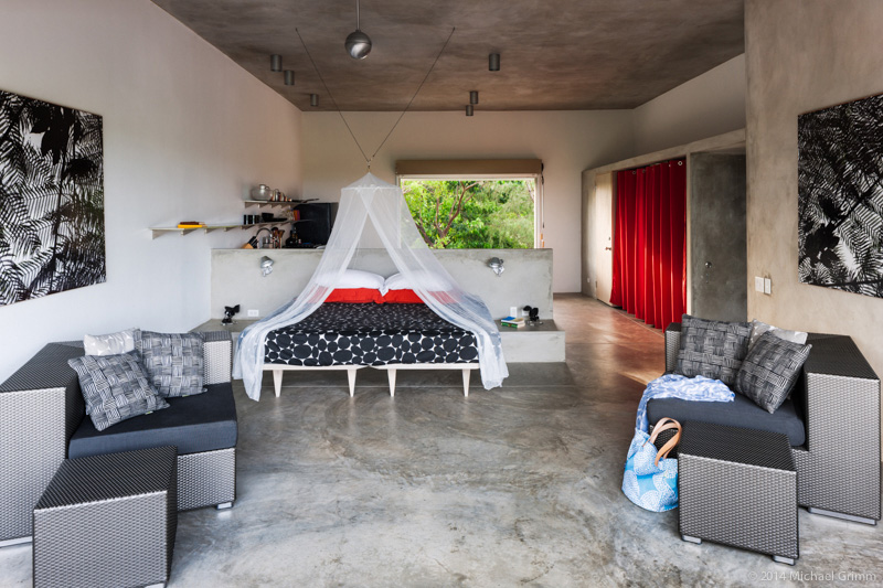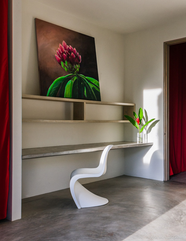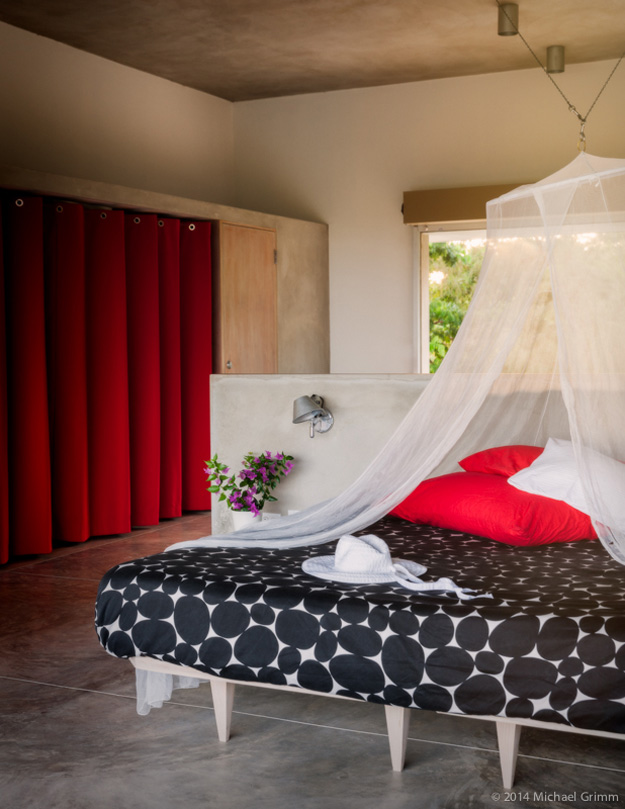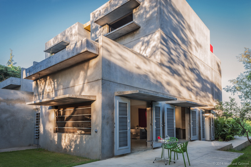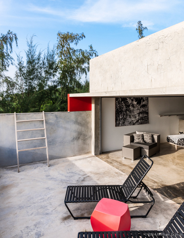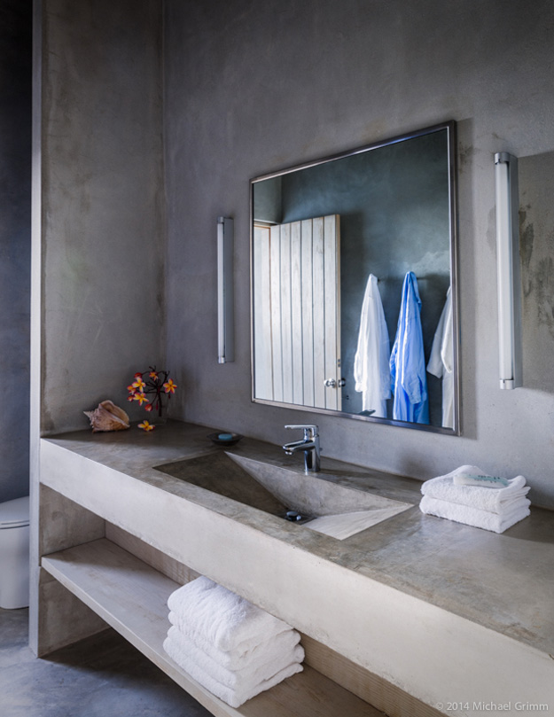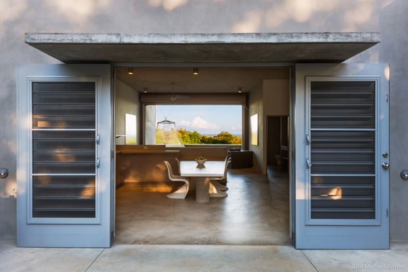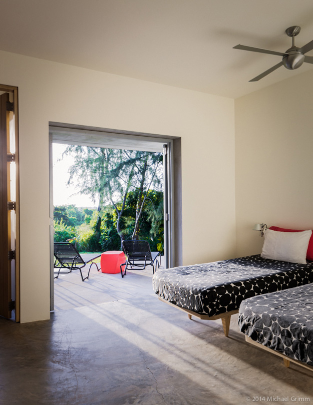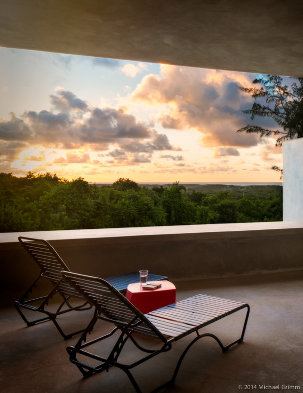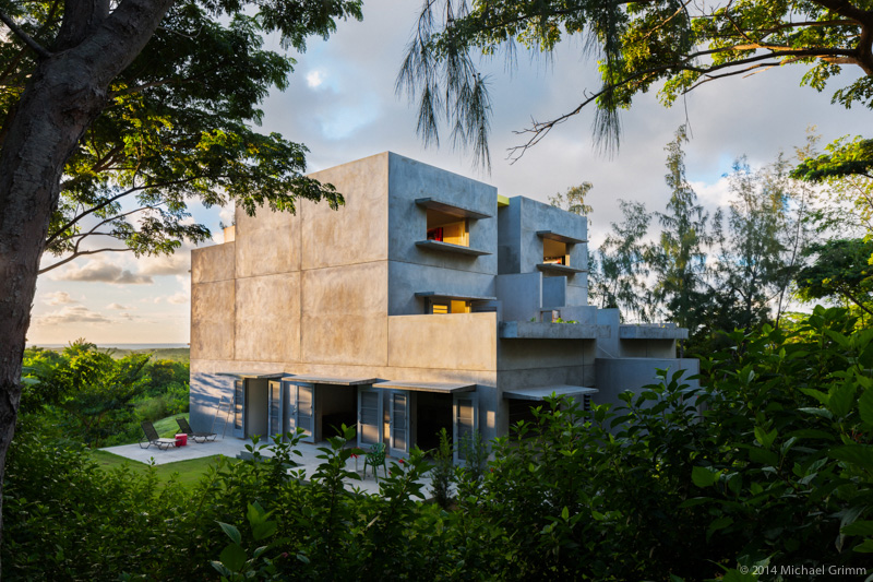 Michael Grimm sent along some of his photos that came at the perfect time because I am NOT READY for the 30 cm of snow we are supposed to get and he was complaining about Brooklyn weather. So how about a little virtual trip to Vieques, off Puerto Rico… Designed by architect John Hix, hotel Hix Island House now has a guest house called Casa Solaris, which is entirely run on solar power. The house is designed to take advantage of trade winds, and the concrete is an unexpected contrast to the lush island landscape. The addition of yellow keeps it from being too sterile.