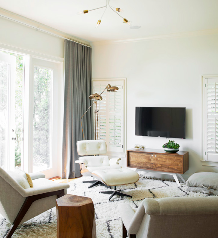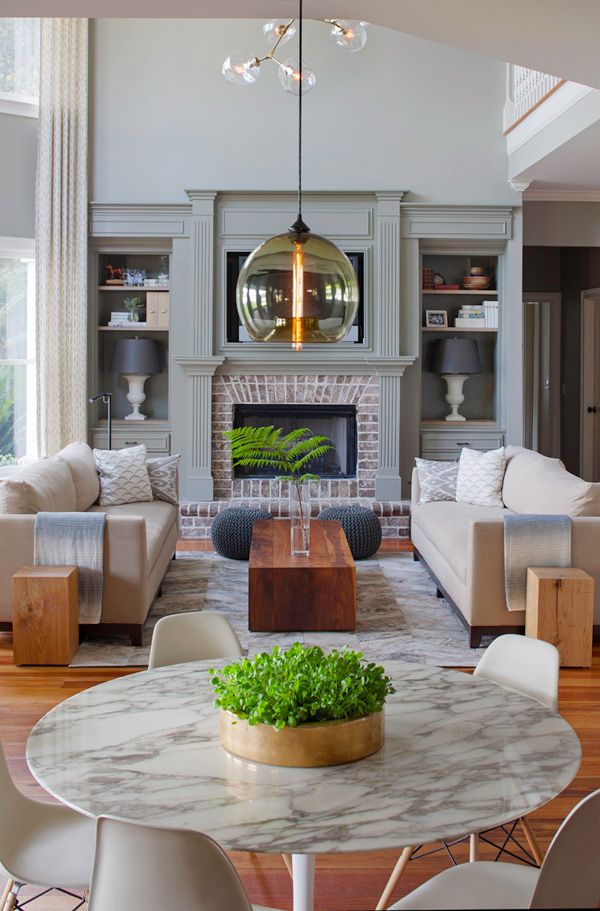 Jo featured a really lovely beachy pad several months back by Georgia-based interior designers Rethink Design Studio and today I bring you some more projects by this super talented team. This is a home for a family of four was once traditional and is now edgy with a mid-century vibe. I love that they took such a classic-detailed home and brought it into this decade. I bet the kids are proud to bring their friends home now! (They should consider a kitchen redo though – bleh).