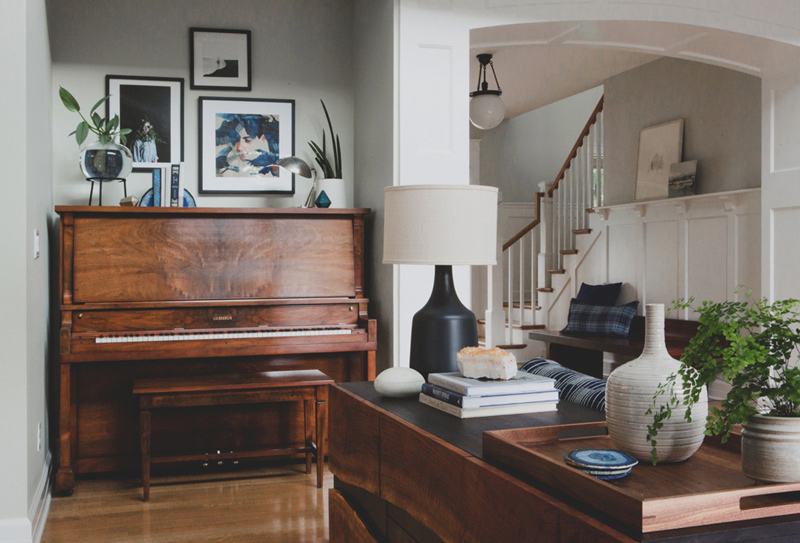LOVE LOVE LOVE these spaces designed by Portland, OR interior designer Courtney Nye. She blends so many different styles together and somehow manages to create such beautifully cohesive rooms that are complete eye candy. Like the kitchen in the first 2 photos. The cabinet colour (mint?) is surprisingly perfect with the subway tiles and steel accents.
