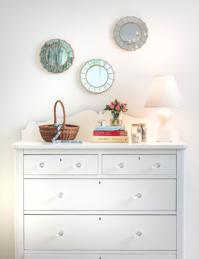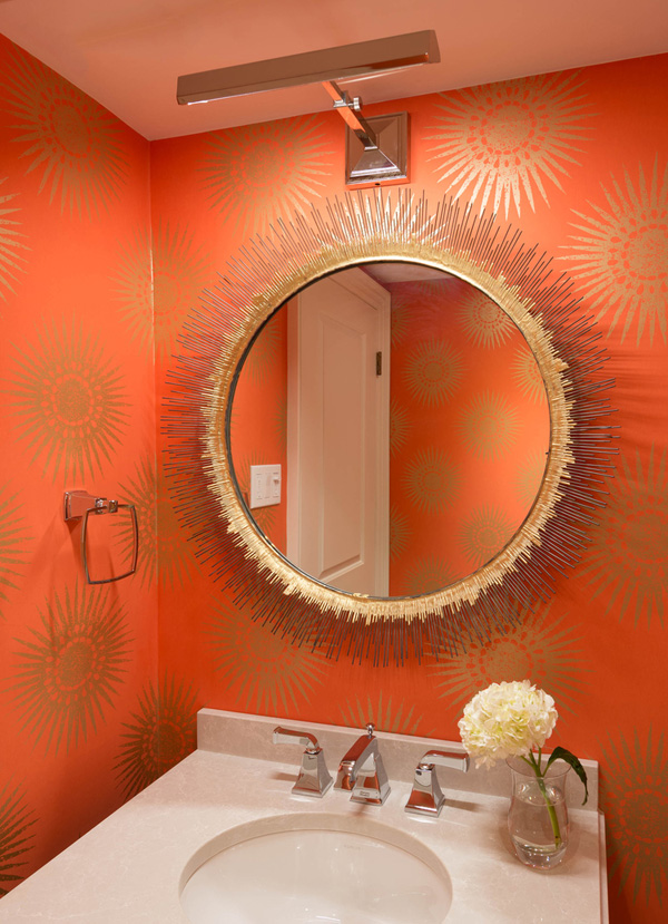 All of the brass is gorgeous. Wow, all are stunning. The bathroom with the circular mirror stands out.