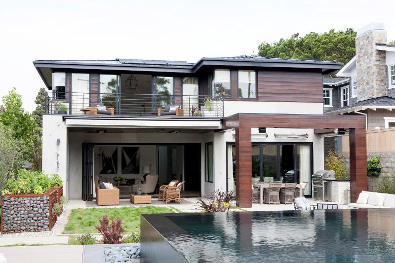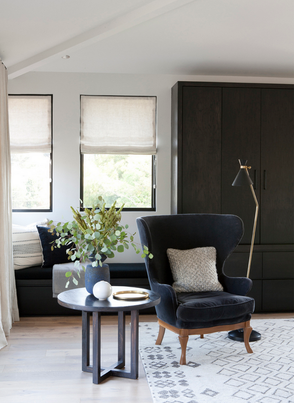 A neutral palette contrasted with variations of black and darkest blue, layered with texture and suffused with soft light. A warm, modern design, a casual elegance, comfortable and stylish. Manhattan Beach house by Los Angeles-based Disc Interiors.