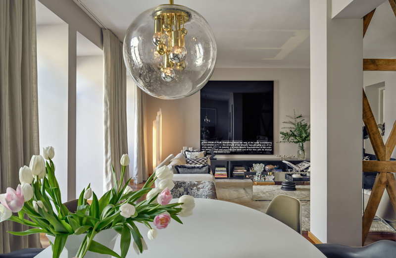This apartment is HOT! It is located in Lisbon and was designed by Cristina Jorge de Carvalho. Cristina created an elegant, glamorous and feminine space that is simply stunning, by mixing modern, mid-century vintage and classic pieces. It is eclectic but it all works so well together. My favourite touch is the fancy crystal chandelier in the modern black kitchen. Sexy!