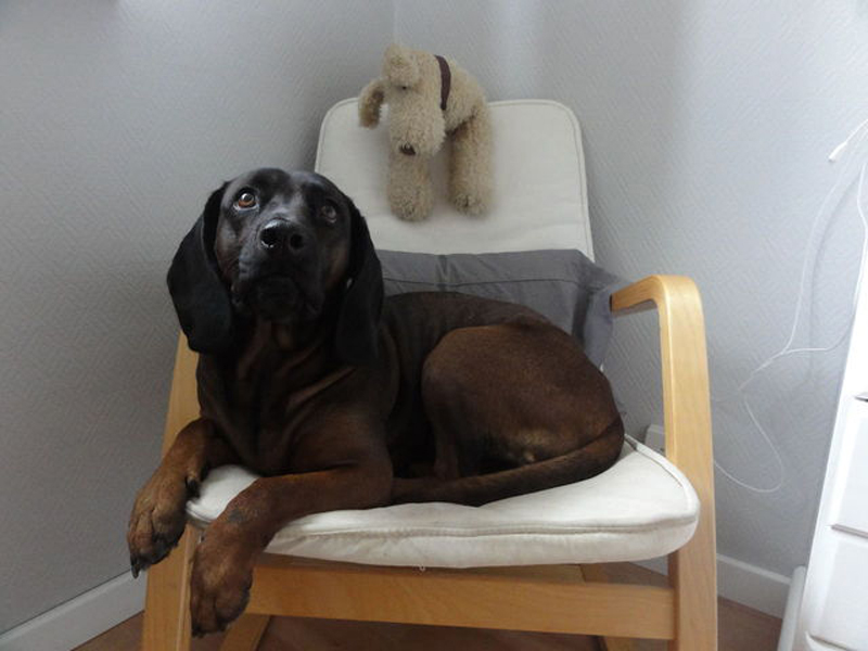 I send photo of my dog: Bella. She is 7 years old. Very funny girl :-), love to run, play with a ball or stick and sleep on her armchair.