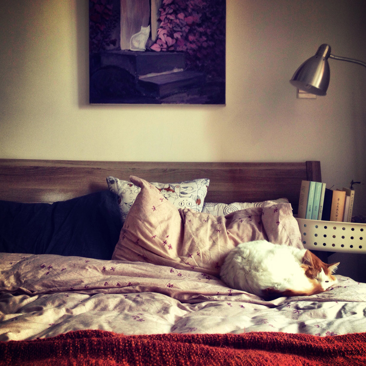 This is Flynn sleeping on my (HIS) bed. We spoil him ridiculously because he had a hard start to life, being tied to an abandoned rental property. We’ve gone through so much with him, including when he chewed the legs of an antique table and when he destroyed brand new, never-worn shoes. He is getting much better, but he still has a trick up his paw every now and then. Can’t imagine life without him!
