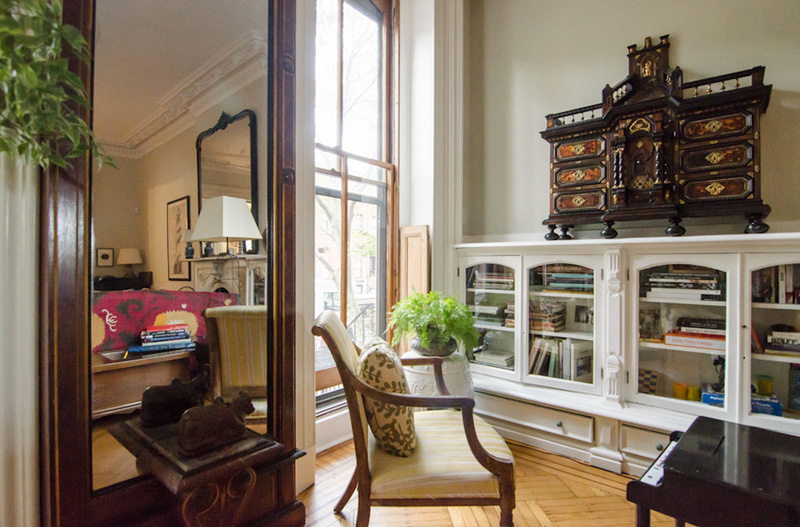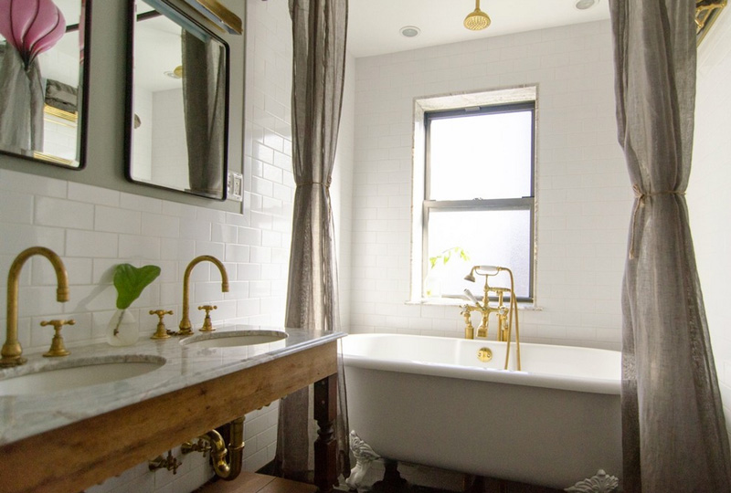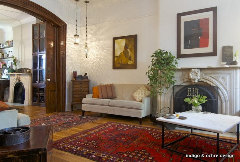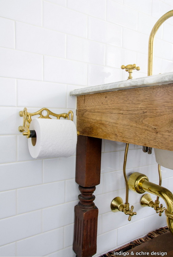 I spotted this bathroom above while scouring Pinterest one day looking for brass inspiration for my kitchen. It is what solidified my decision to go with brass hardware and faucet. Shanti and Courtney of Brooklyn-based Indigo + Ochre are responsible for this beautiful bathroom and the other spaces below. Brass seems to be a favourite of theirs too, as well as incorporating ethnic finds in their designs. The combination results in timeless spaces filled with character and soul.