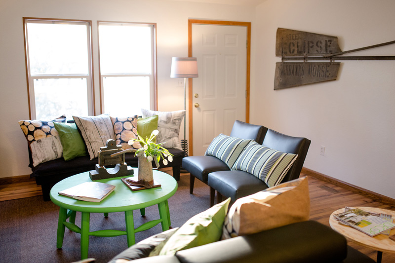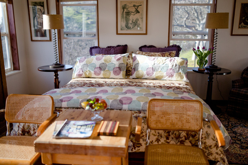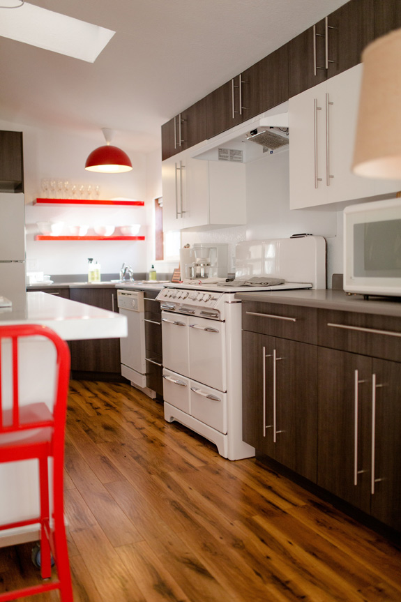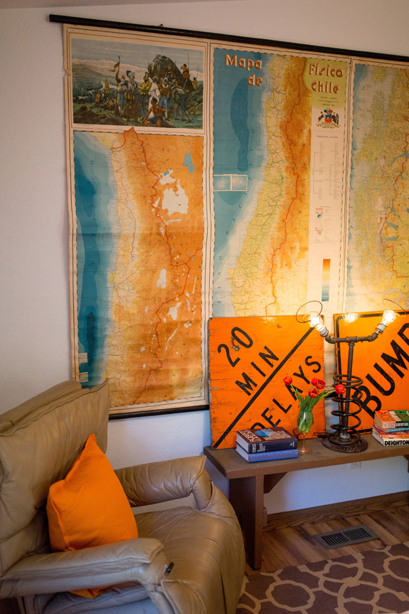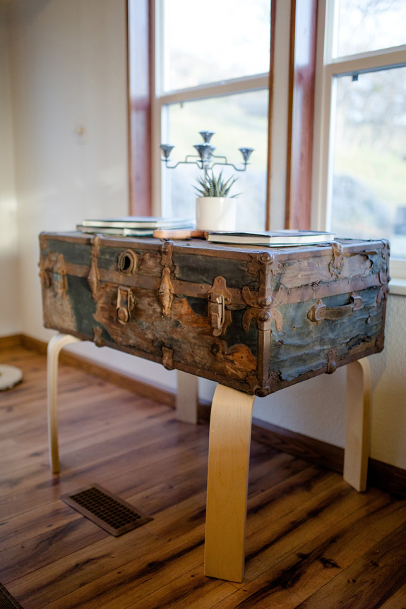 Here DeWayne Lumpkin goes again, creating another phenomenal guest house (in Ashland, Oregon) that no guest will EVER want to leave. He is a freaking genius when it comes to re-using existing furnishings and incorporating inexpensive vintage finds to create really fun and inviting spaces. The owners lived in this double-wide manufactured home while they were building their “Dream Home” further up the hill. We used 75% of their furniture – adding textiles, lighting, accent pieces and some furniture along the way. A broken pipe in the kitchen went unnoticed and caused much damage before being discovered. I was brought in to do the kitchen on December 27, 2014 – an insurance job and my first kitchen. After haggling with the insurance company over the difference between my bid and their adjuster’s estimate. With ordering custom cabinets and rebuilding the kitchen from sub-floor up – that work took about 60 days. Then, last Tuesday we started on the rest of the house – which was ready to go in 6 days – I did have a few tricks up my sleeve and we had a painter, electrician & plumber deal with any issues that arose prior to the start date on restyling the rest of the house. We finished on Sunday afternoon and did all the other rooms in the house within the 6 day window. SIX DAYS????!!!!! Dewayne really is a genius. (Photos by Nikita Lee, and check out another of his projects here)