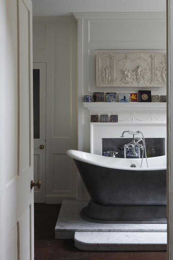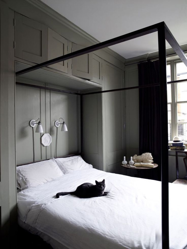 Of course, I had to start this post off with a cat on a bed photo as I have cats on my brain these days (my 2 little ferals are breaking my heart they are so sad/scared). British architect Chris Dyson was featured here a few years ago, and continues to inspire with traditional spaces restored and modern spaces where updates are a must. But it is the traditional spaces that makes my heart skip a beat. In London how could you not want to keep this history alive when it is so absolutely gorgeous?