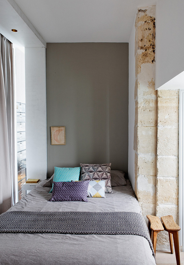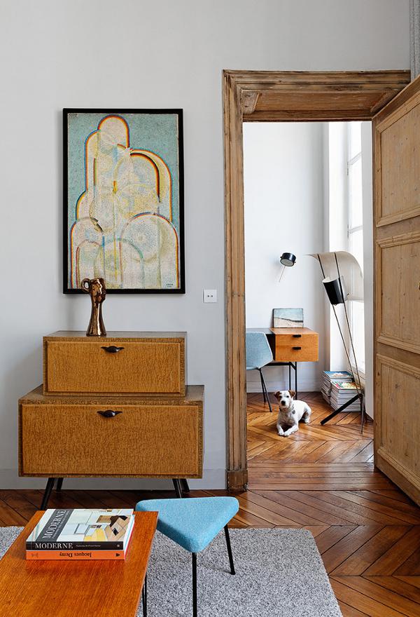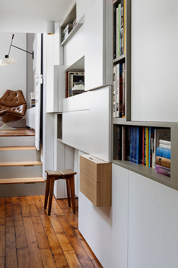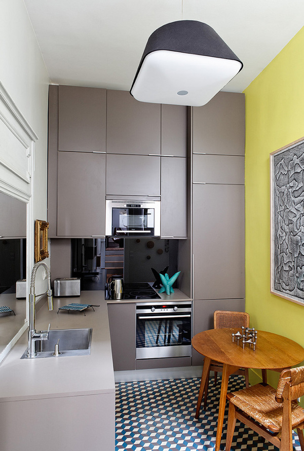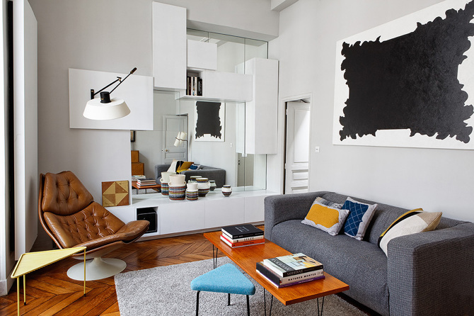 The 40sqm apartment of Paris-based interior designer Charlotte Vauvillier. A perfectly formed little gem of bespoke furniture and fittings accented with midcentury pieces. Small is beautiful.