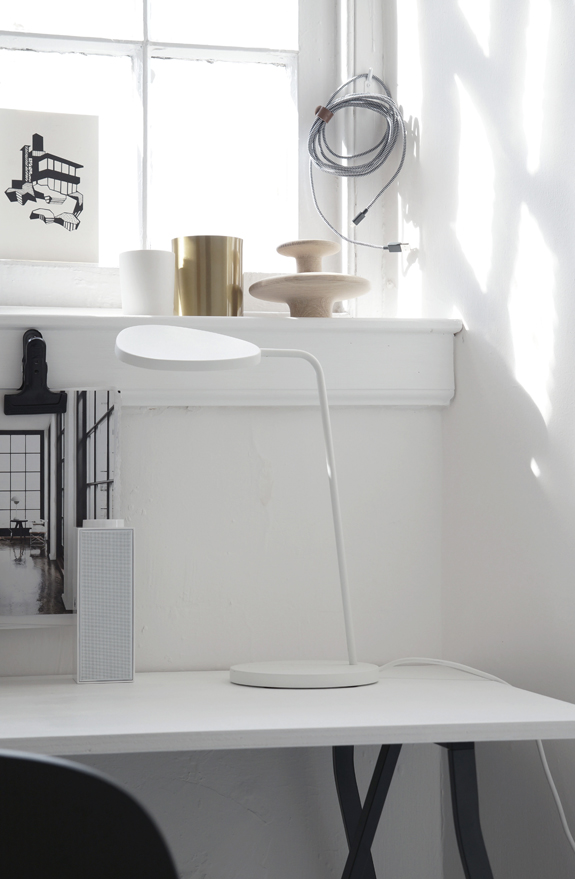 The industrial space with large windows was brightened right up with all the white paint and was the perfect backdrop for a monochromatic workspace. Details are on Hege’s blog here.