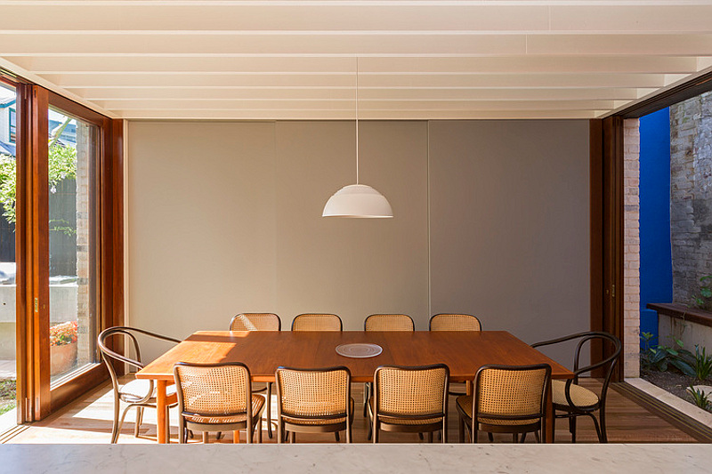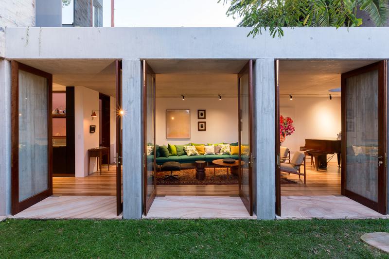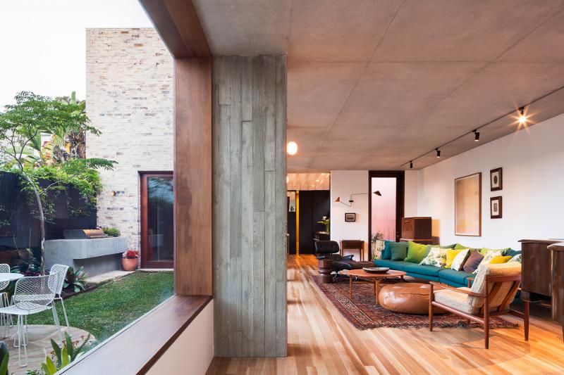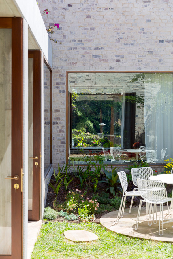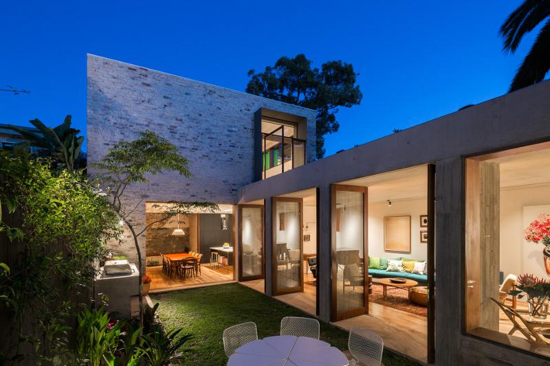 Reinterpreting the historical vernacular of Paddington, Sydney Aileen Sage Architects have turned their new build to focus inwards on a series of courtyard spaces and a rooftop garden. With sliding and folding walls of windows and doors the interior connects with the outdoors allowing flexibility of use. Private, intimate, family oriented, a secret garden, an oasis, a place to close the door and welcome the family with open arms.