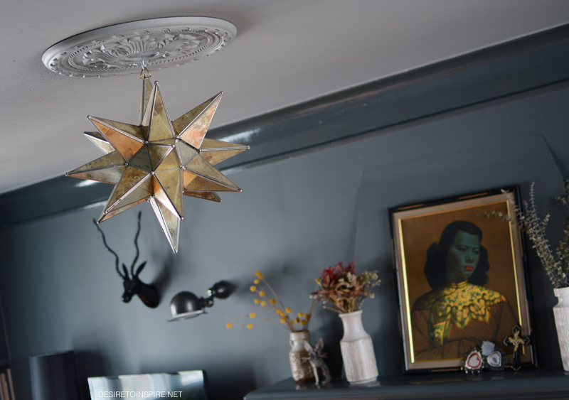 My life has been super crazy for the past couple of months and while I am trying to find time to get my kitchen redo completed (may take a while if I end up redoing the floor) a few new things have happened in other spaces. Nothing major but getting anything done around here is a miracle and I need to celebrate it. For starters, I bought a light fixture 2 months ago and it was finally hung up in my living room (that is a dig at the husband who has no excuses). I say hung instead of installed but it literally is just hung on the ceiling. Judging by the mark in the centre of the ceiling when we bought this house, it seems that in another life, there may have been a light fixture. The ceilings and walls in here are plaster, not drywall so I refuse to go tearing holes anywhere for no good reason. I don’t really need a working light in the ceiling as I already have 8 lights in the room but the large expanse of ceiling looked a little bare despite me having put up a ceiling medallion when I painted the room. It was a good start but it was missing something. It was missing THIS GORGEOUS LIGHT.