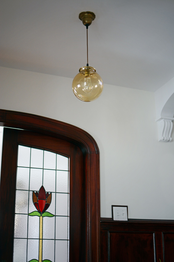 At the same lighting store I also found this simple amber glass shade fixture for the foyer.