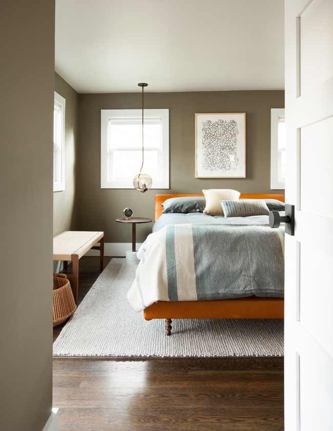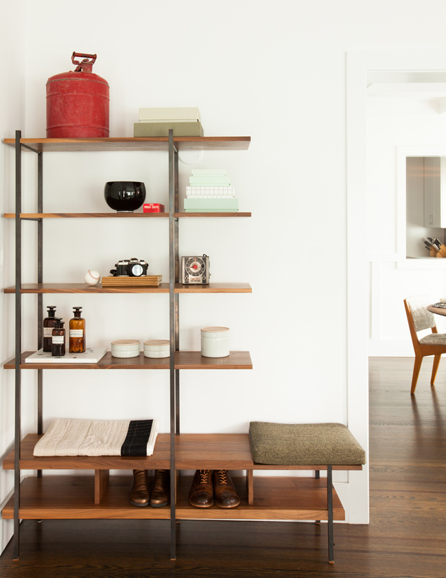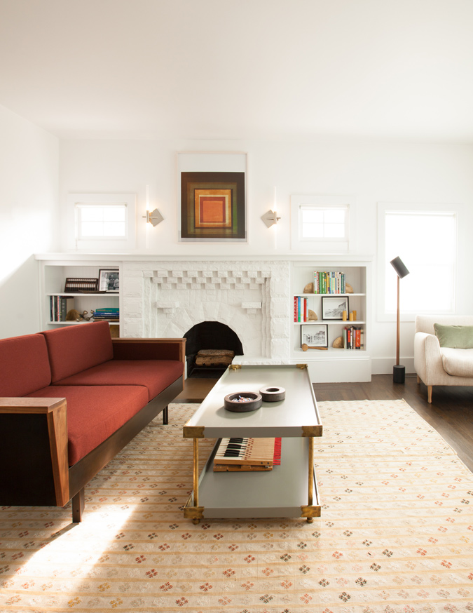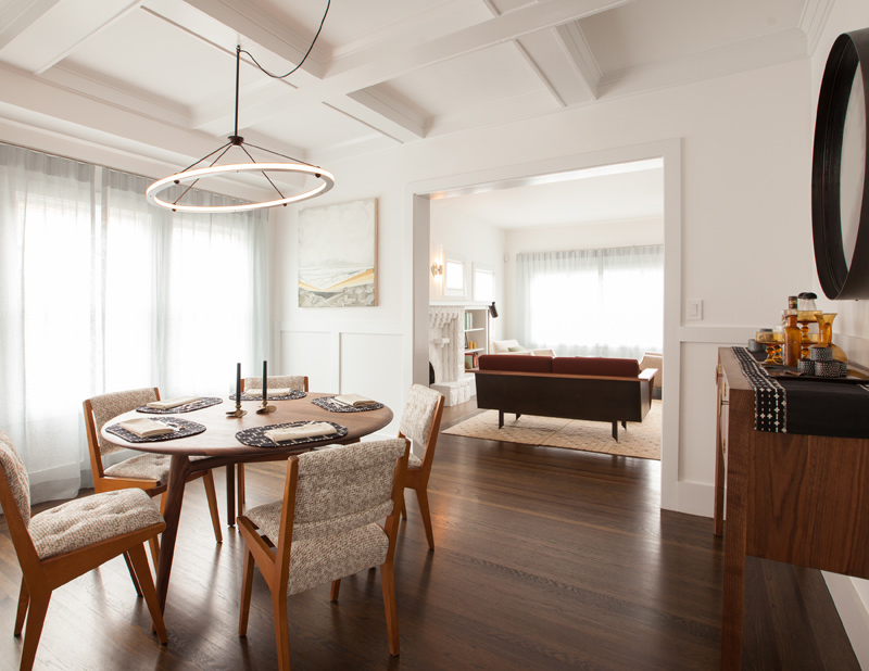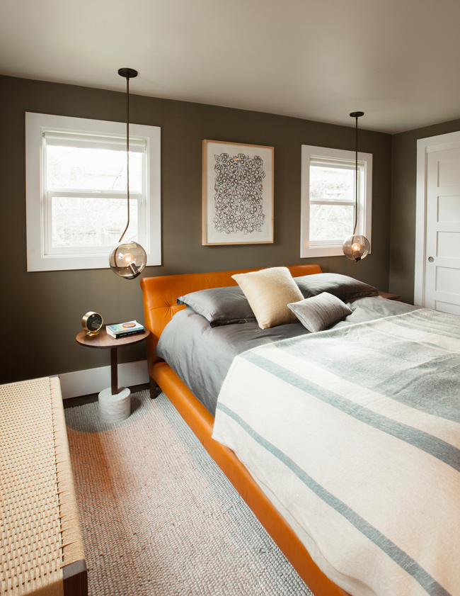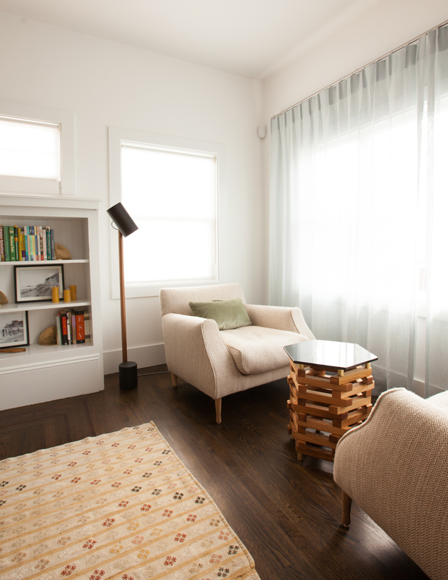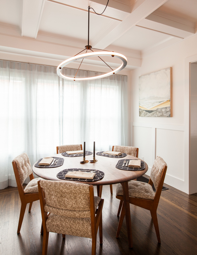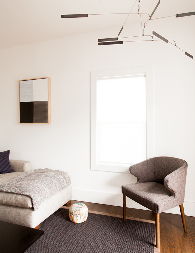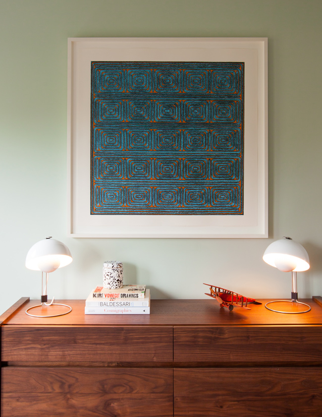 I am stoked to feature this home by Lauren Geremia of Geremia Design now that I got my hands on these fabulous juicy photos (by Melissa Kaseman btw). It is mid-century sophisticated with an youthful edge. We wanted to give our client an updated and contemporary look for his one story Craftsmen home, including furniture with detailing that nods to the architecture of the space. Our client travels frequently, but when he is home likes to host dinner parties and cook for his friends. We created a comfortable living and dining space that can accommodate guests, and curated a evocative selection of contemporary art that suits his taste. LED lighting and a custom designed hand oxidized brass media unit are design highlights of the project. (Previous features of her work here, here and here)