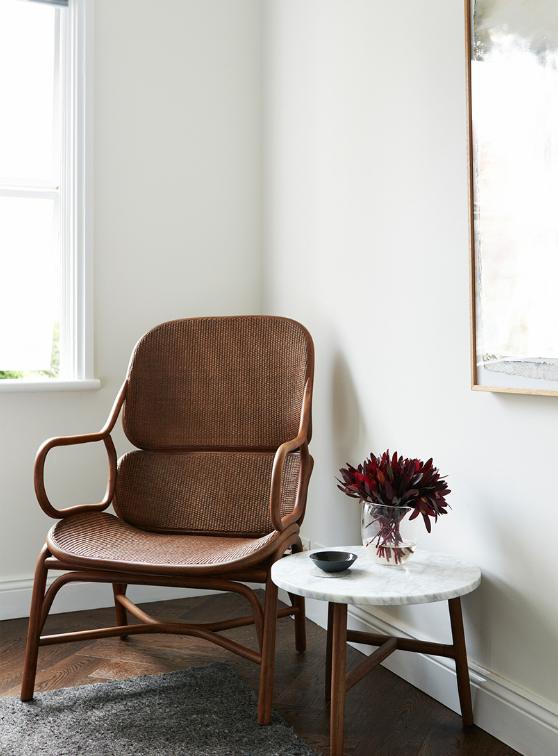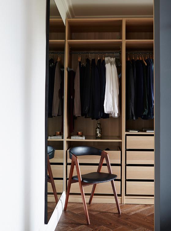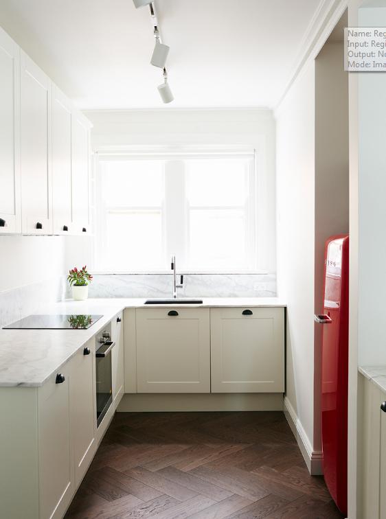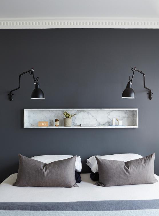 Love the dark grey wall with the marble shelf. Love the penny rounds in the bathroom. Love the waterfall edge to the stone bench in the kitchen. Love the clean contemporary lines of this apartment renovation in Bellevue Hill, Sydney by TomMarkHenry. A modern, minimal interpretation to play off the art deco lines of the original apartment.