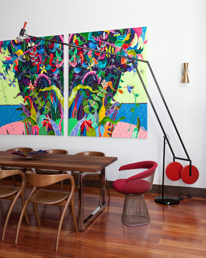 Venezuelan Maria Gabriela Brito is an interior designer now based in New York City who pulls out all the stops and breaks all the rules. Maria loves colour, patterns, and her number one standout is art. That is in fact one of her goals – to turn her clients into meaningful art collectors (more on that in the next post). Here is a home she designed in Long Island, NY. It is bold, lofty, quirky and really fun.
