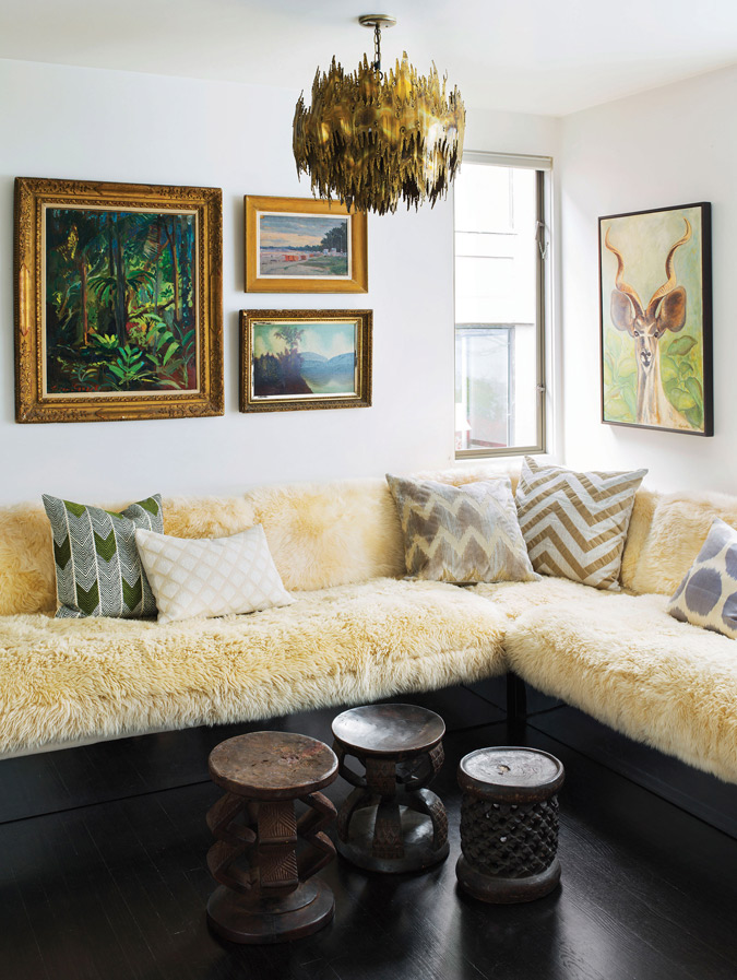 Happy Friday dear readers! I leave you with this photo, a fine piece of decor ass if I may say. Sexy black floors, sheepskin extravaganza (my cats would lose their minds) and a SWEET brutalist light fixture. Via C Home (photo by Douglas Friedman).