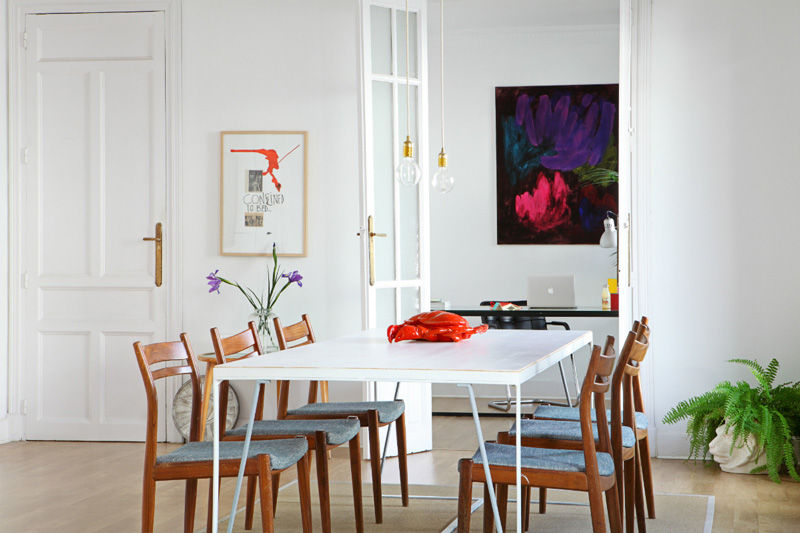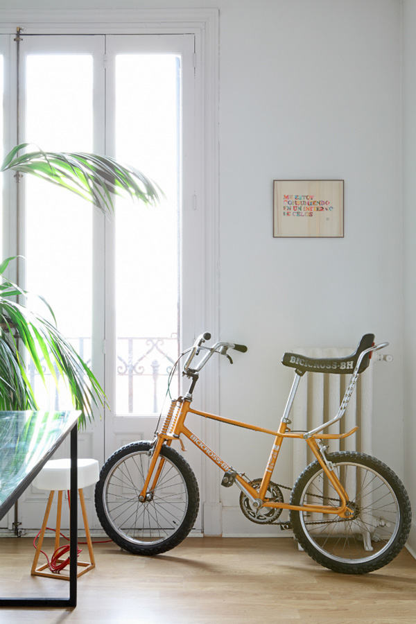 I have a thing for eclectic spaces, where it appears that the homeowner does alot of thrift shopping and most pieces have not originated from Ikea. This simple yet eclectic apartment in Madrid caught my attention. It has some fun, graphic art mixed with mid-century furnishings and accessories (ie. beautiful West German vases!). I personally would have maybe added some colour to a wall or 2 (maybe they aren’t allowed) and I find the dining room very underwhelming. Other than that it is a wonderful, bright open space that is very inviting. Via Architectural Digest Spain, photos by Asier Rua.