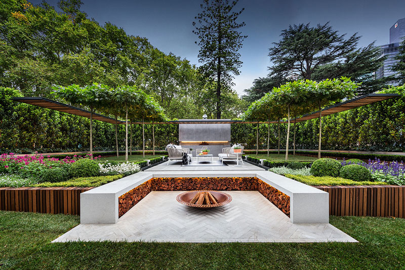 I have landscaping on the brain because the snow has all melted here in Ottawa and I am left with the most embarrassing front lawn in my entire neighbourhood. For whatever reason, in the 75 years since this house was built, no one bothered to landscape aside from sticking 2 evergreen bushes asymmetrically on either side of the front walkway (you can see what I mean here). And I live on a busy street so please Ottawans, don’t judge me. I had nothing to do with it. And as soon as I can afford it, some serious landscaping is going to happen. When we were sent these photos, my embarrassment went into overtime. This is one of the most beautiful garden designs I have ever seen. It is the creation of landscape designer Nathan Burkett for this year’s Melbourne International Flower and Garden Show. Titled ‘Equilibrium’, Nathan’s garden signals a return to soft, usable spaces where greenery is used in place of traditional ‘hard’ landscaping elements to create structure and symmetry in nature. Some of the garden’s key features include a cantilevered arbor which wraps around the perimeter to create an architectural ‘frame’ in which the rest of the garden sits. The seating area is paved with intricate stone work which continues along the garden’s base, interspersed with soft lawn areas and a pond which is subtly tiled with Italian glass. The living pergolas (mature deciduous Plane Trees), which stand approximately 3m tall and have been grown over a five year period, represent a return to nature as an architectural centerpiece, using organic material to create the built form. ‘The garden is soft with movement and organic elements, while still recreating my signature aesthetic of symmetry and clean, crisp lines.’ I am SO inspired by this stunning design. Kudos to Nathan for knocking another one out of the park.