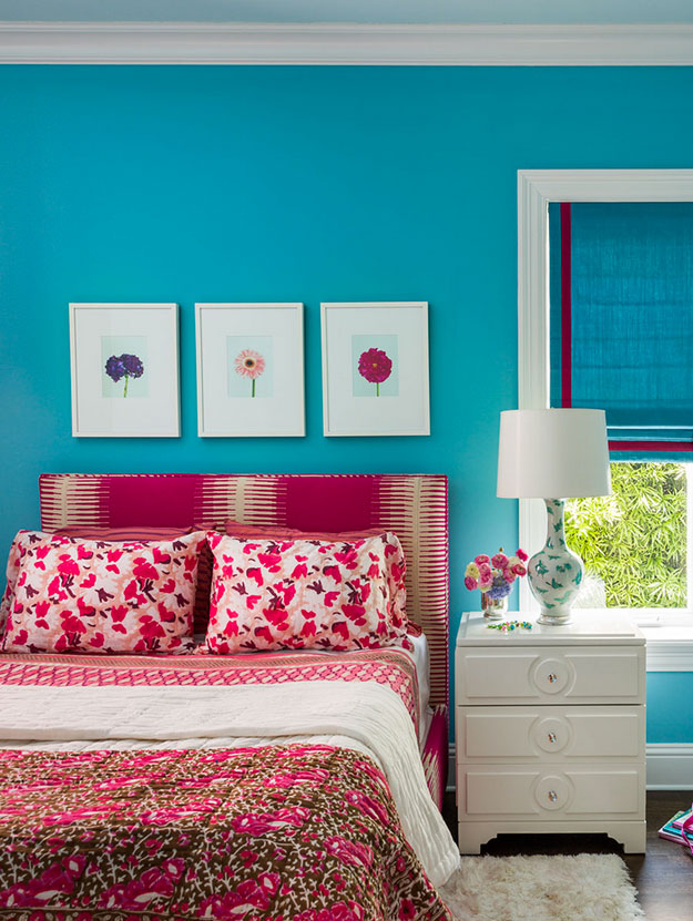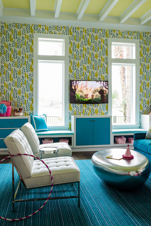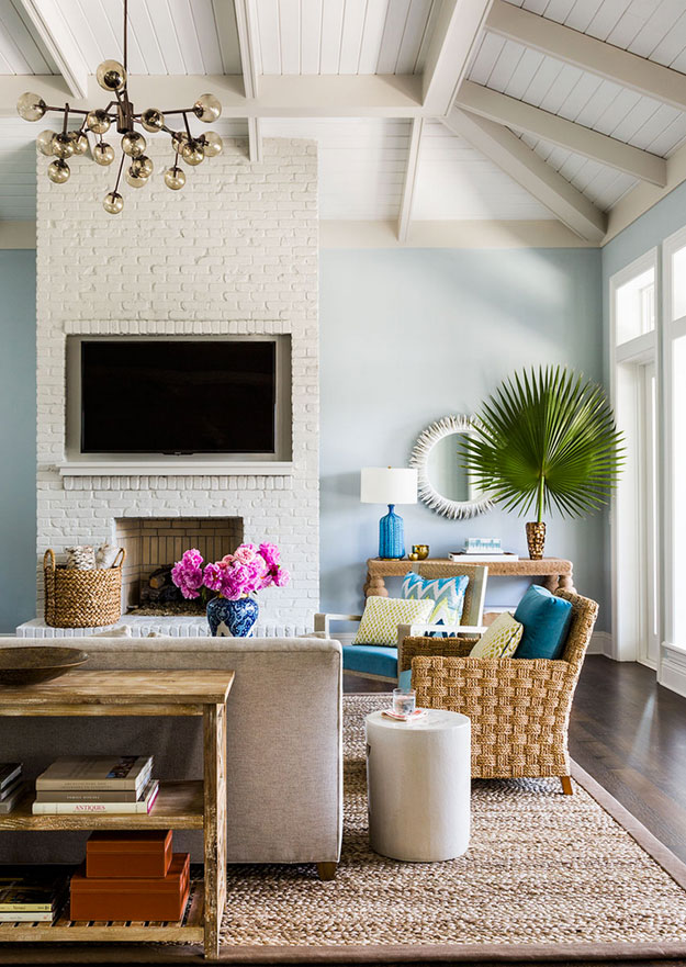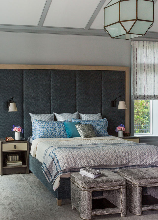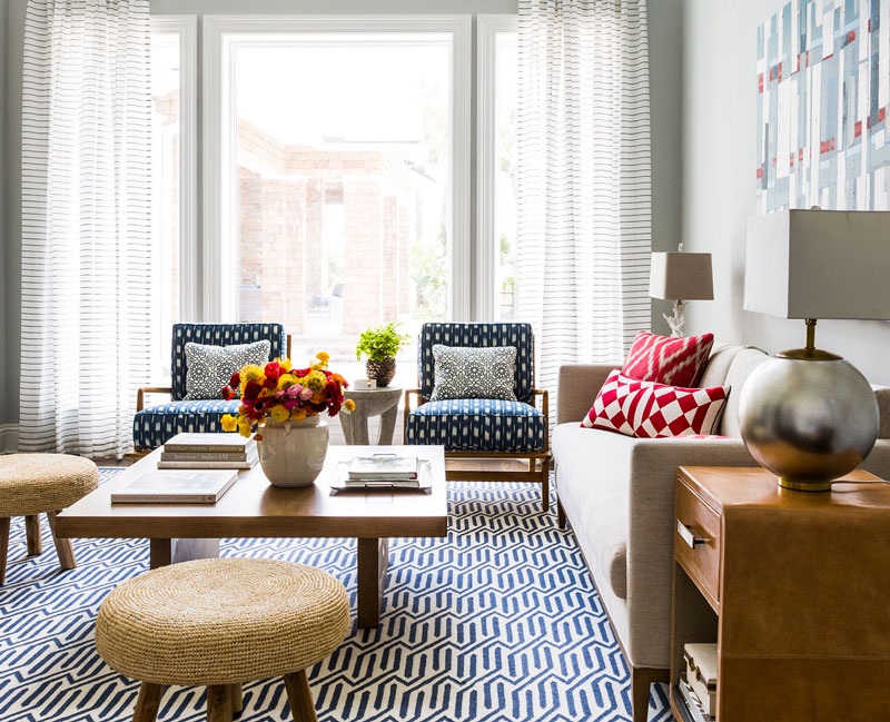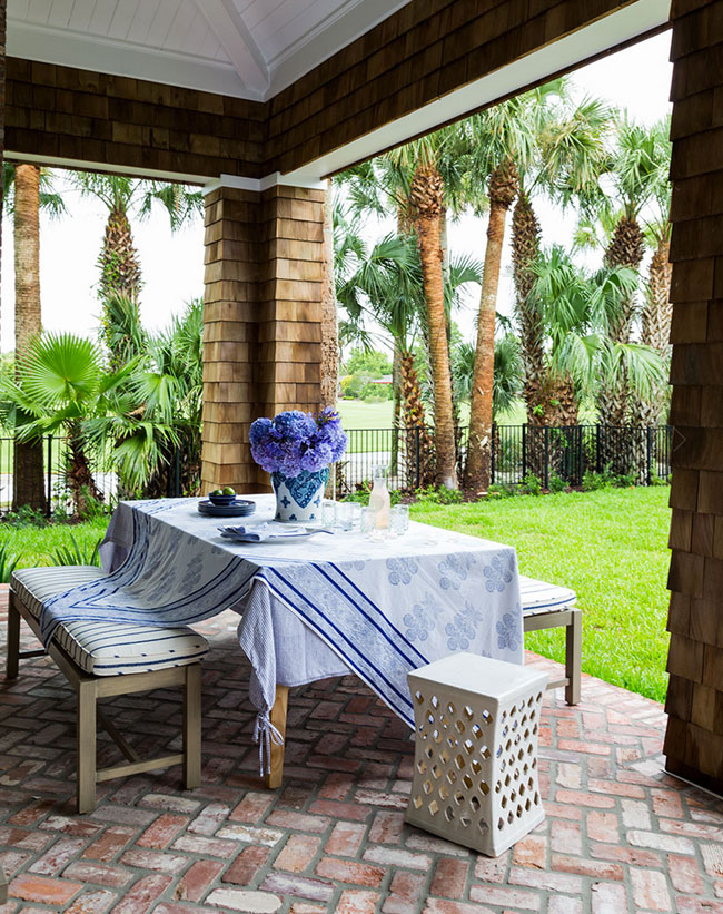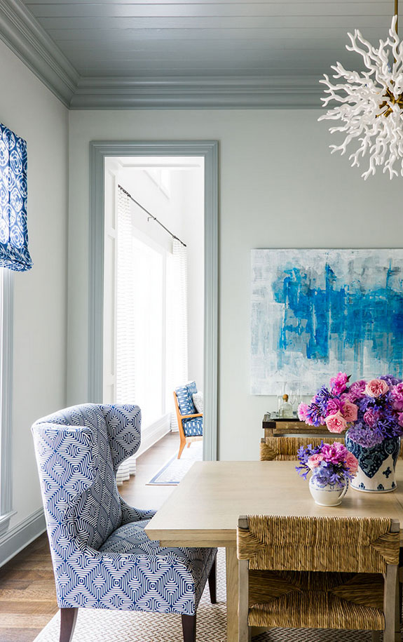 Welcome to the bright and cheerful world of Florida interior designer Andrew Howard, where pattern runs rampant and textures are aplenty. This home is dubbed Blue Crush – blue in every shade imaginable. And somehow it’s not overwhelming. This guy is GOOD.