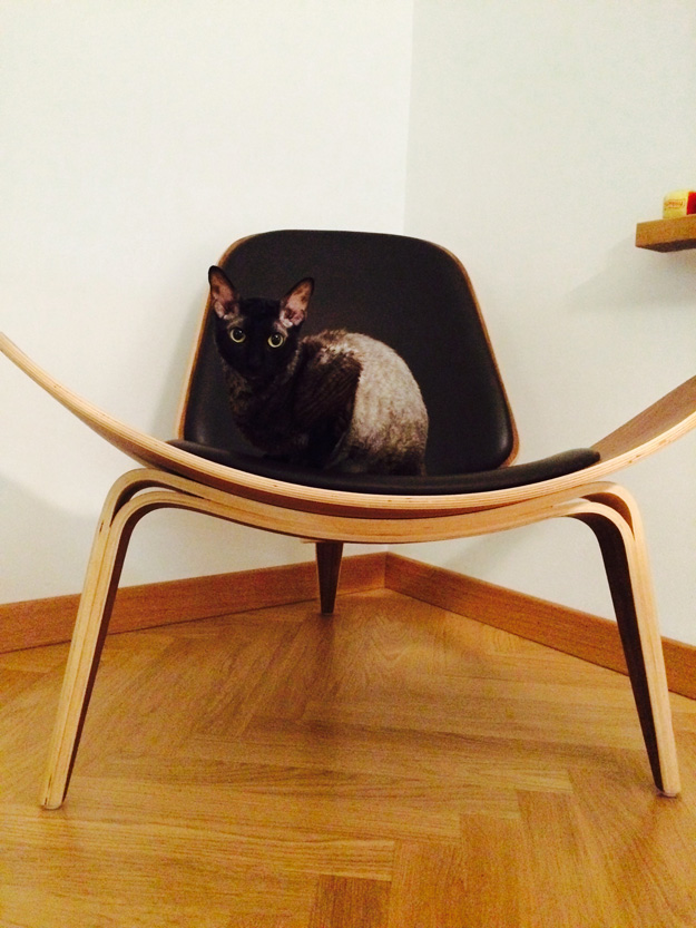 Felix, having a nap on the Panton chair next to my desk.