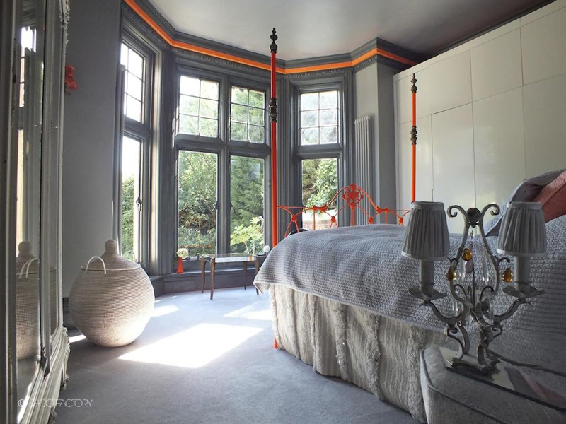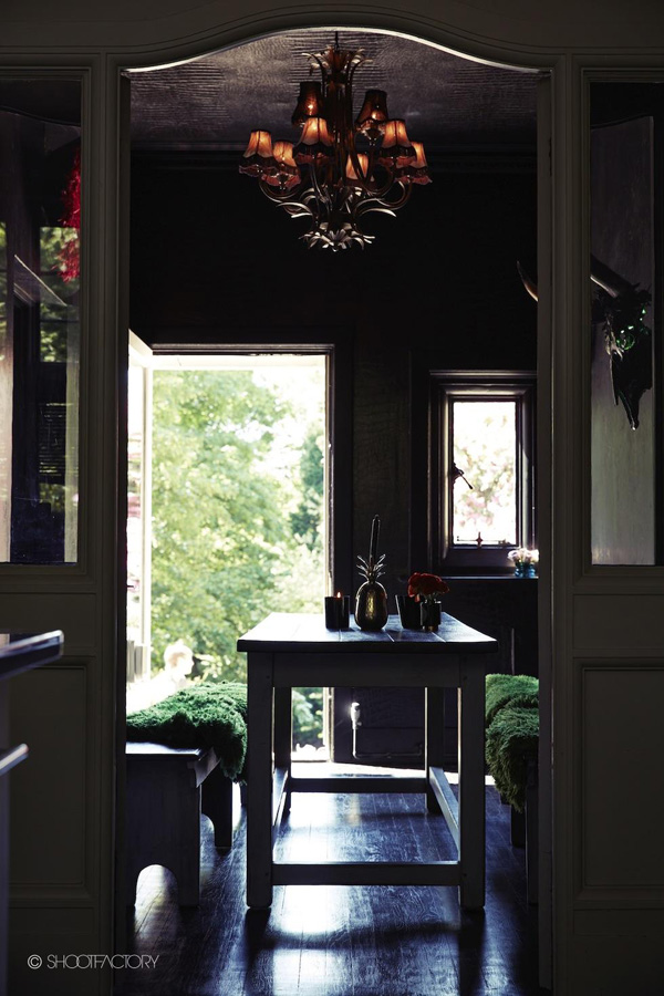 OMG this U.K. apartment in a Victorian manor is HOT!!! High ceilings, period features, floor to ceiling windows the décor is a fusion of gothic, classic and contemporary design with sensual heritage colours, detailed corniche, wallpapered ceilings, tarnished metalics, animal skins and prints. Call me crazy, but I now want to go find a birdcage and some gold chain… Location space available via Shoot Factory.