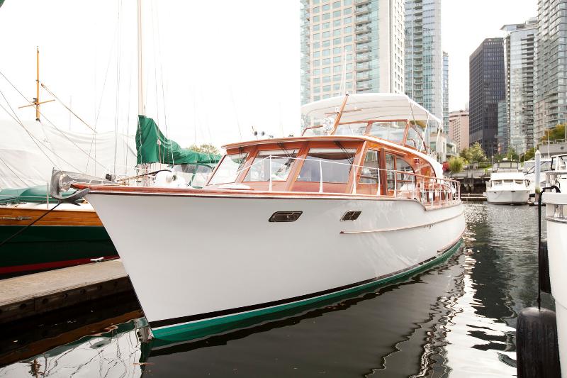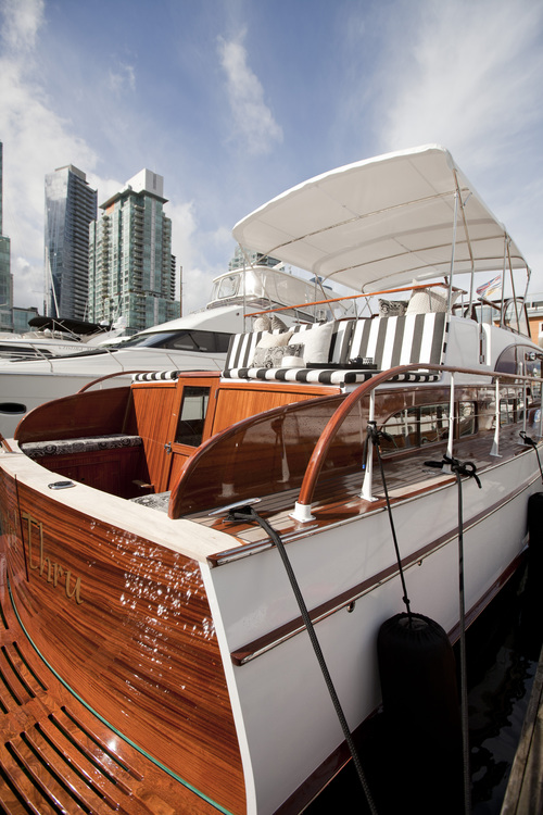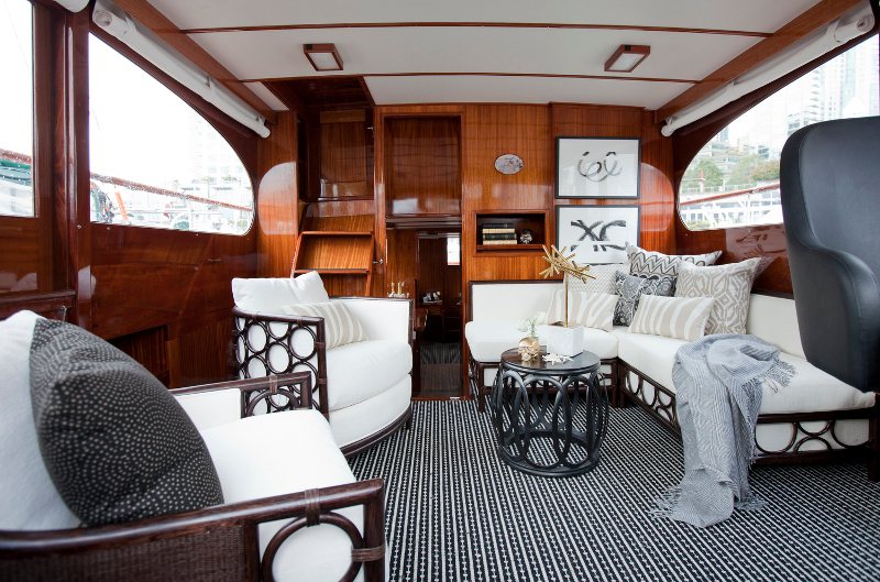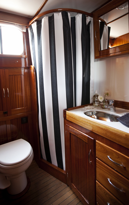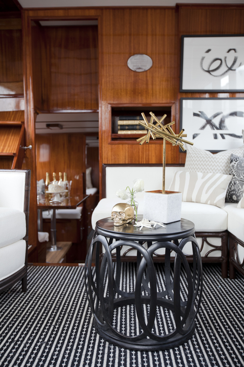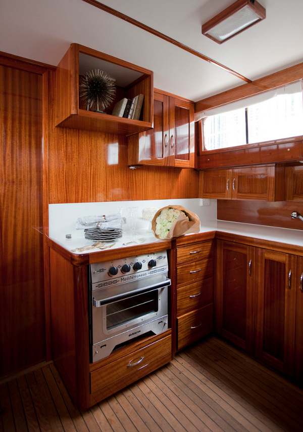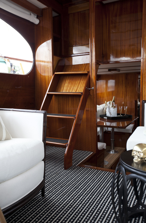 On the blog that is. I’m still waiting for the boat in real life. If I did have a yacht I’d have one just like this refurbed 1961 cruiser by Peter Wilds Design. Warm polished wood, gleaming metal, sophisticated black and white. Pass me my boat shoes and my captain’s cap. It’s love at first sight.