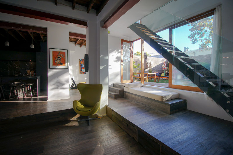 Once upon a time there was a cool dude who had listed his warehouse apartment for sale. I stalked him as I am prone to do. Well I stalked his apartment here. Turns out cool dude has been very busy these past three years. He has bought a new place (horribly rundown but still with warehouse proportions), become part of a cool couple (not sure of the timing of this event but I won’t let it get in the way of my story), there is even a cool couple’s cool child and they all lived happily ever after in their very cool, restored, ginormous new inner city Sydney warehouse. At least, that is, until they find another rough diamond to renovate. Thanks for sharing your new home Steve!