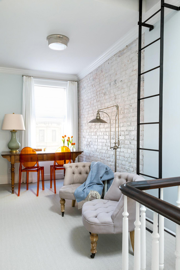 At Chango & Co., we walk slowly past brownstones. When we happen upon a modernized, neglected, subdivided or worn down brownstone townhouse, we daydream about giving back the personality, charm and dignity that was lost along the way. YES!!! This is precisely why I am head over heels for this design firm. Restored brownstones are a dream…and Chango & Co. made this one a reality for the very lucky homeowners. The family who lived here had everything the home’s interior seemed to lack – lots of personality and a classic, refined style that didn’t fit and couldn’t feel at home in these plain surroundings. They also had a three-year-old girl, and little girls have lots of stuff, acres of stuff, and this house had very little storage space to neatly contain it all. Acting as architect, construction administrator and interior designer, we designed, built and installed over 60 linear feet of built-ins throughout the home, adorned the walls with paneling that arched and ascended up the stairwells, curved through the hallways and into the bedrooms. We then unfurled a meticulous plan of finely detailed furniture, warm lighting fixtures and bold artwork that covered the entire home, magnified the grand scale of the high ceilings, broad archways and added the finishing touches to these comfortable, beautiful and fitting surroundings that makes this family of three finally feel at home. (Photos by Ball & Albanese, and previous Chango & Co. features can be found here)