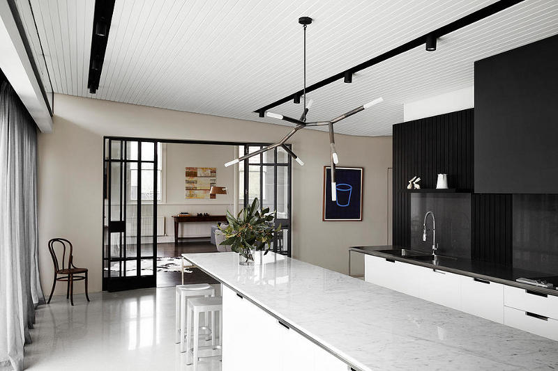 A striking transformation of a 1850’s heritage house to a black and white contemporary beauty. Carefully curated modern looks married to historic charm. A family home with good bones and knock out style. Hawthorn House by Ross Tang Architects.