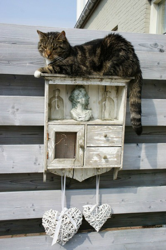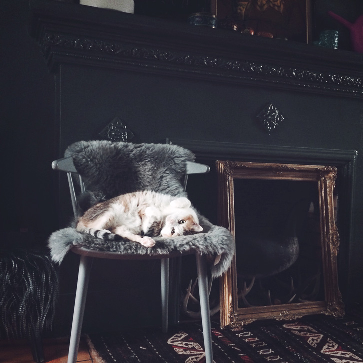 I know this isn’t inside of my home, but it’s my neighbour cat Mo. Ever since my cat has died he keeps me company in my garden and he makes my grieves a little less. This is his favourite place.