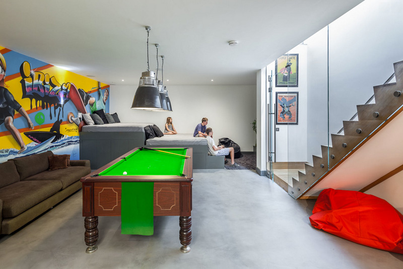 Sometimes the only way to go is down, like in this refurbish/extension project of a Victorian home located in the UK. Riarch Architects pushed the boundaries of basement design by going two stories below ground floor level to create a light and spacious kitchen and family room, with teen hangout beneath it. Thanks to a ton of windows and 2 huge sets of sliding glass doors, you would never know you were technically in a basement. Impressive!