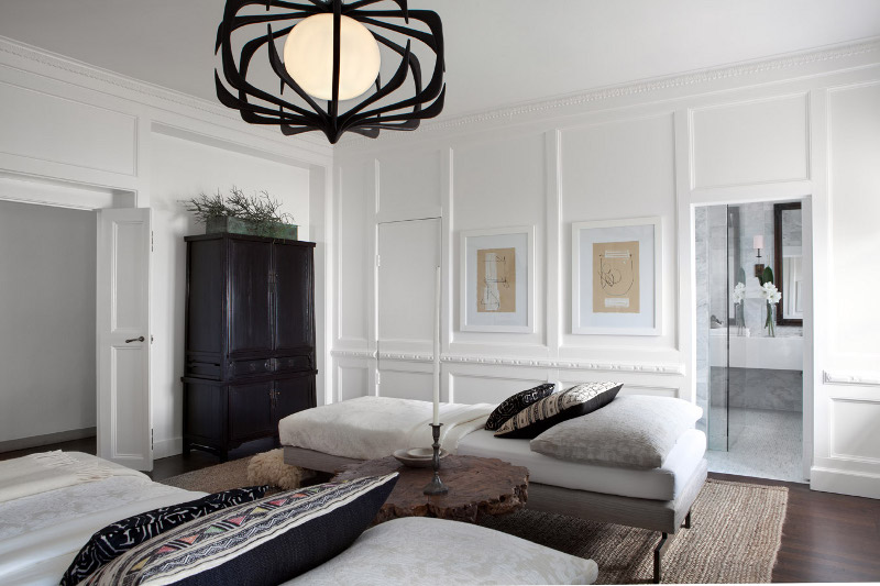 Quiet probably the most serene guest room I have ever seen. Yes I know it may not be practical. It is, after all, a room from a showhouse but it is beautiful. I can imagine it as a day room for lounging or reading, taking a coffee, reclining opposite a confident guiltily sharing tasty tidbits of gossip in hushed tones. Just tuck the bedlinen away in that lovely lacquer cabinet. Lake Forest Showhouse Guest Suite byMichael Del Piero.