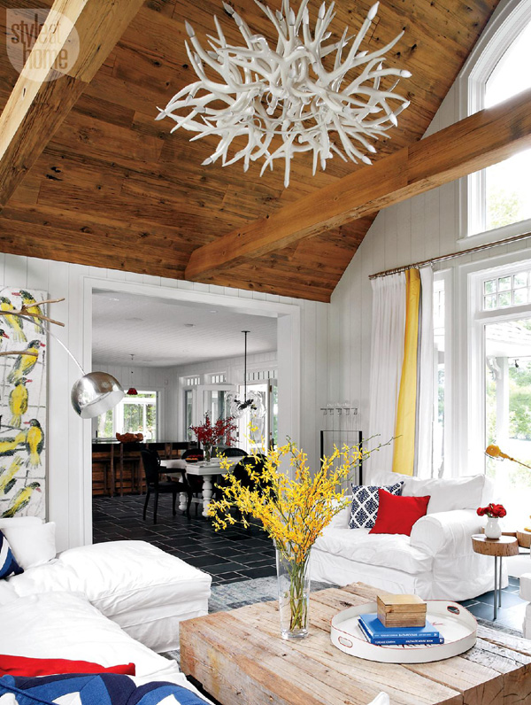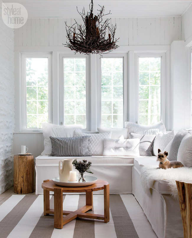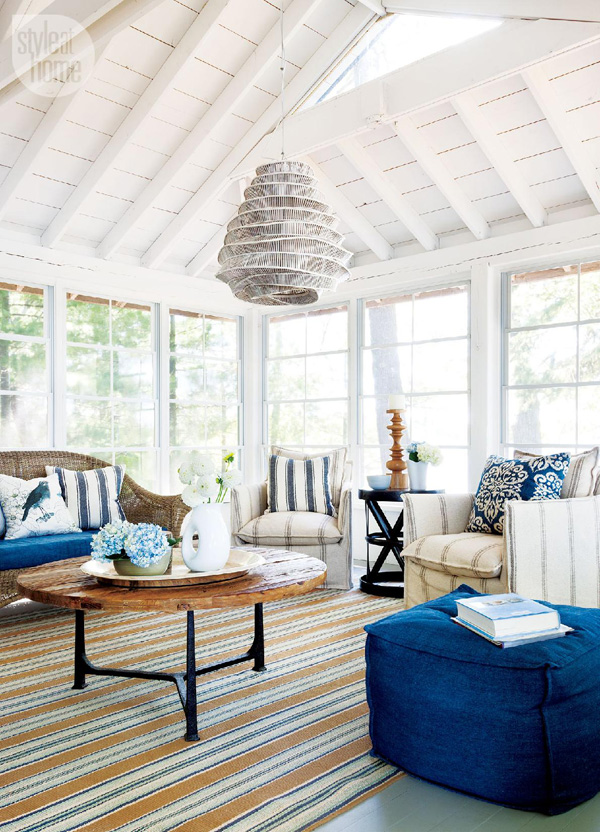 Summer is here and I am loving every minute of it. Hanging out with the family at my parent’s pool (“The Oasis”), barbecues, dinner on patios, the smell of fresh flowers, the sounds of birds chirping…it is definitively cottage season. Sadly there is no longer one in my family (my younger sister had one for a few years and recently sold it), but I continue to dream of owning a cottage one day so I can enjoy the outdoors and OMG another home to decorate!! It seems you can get away with so much more at a cottage. LOL Anyway, Style At Home magazine has a wonderful collection of cottage features so I thought I would share an assortment of my favourite spaces.