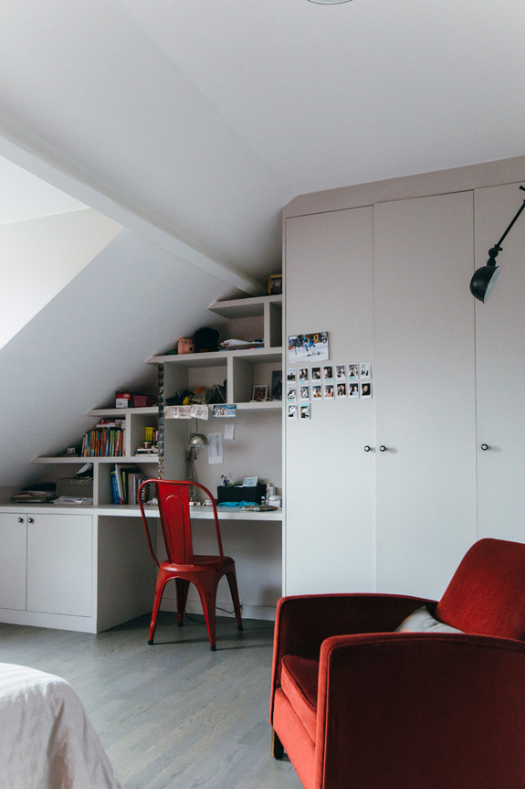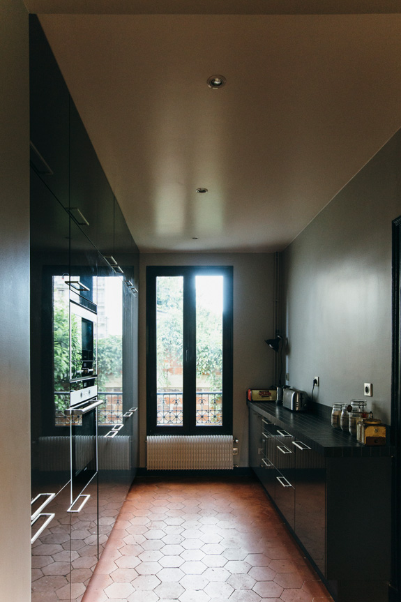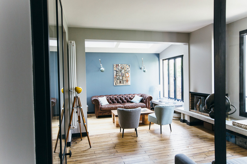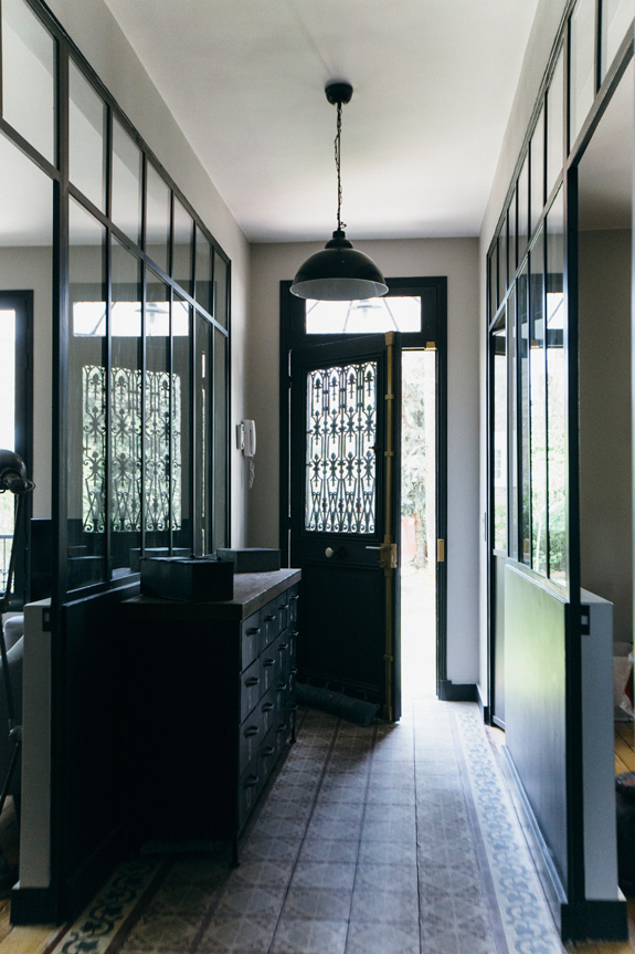We have featured the work of architect Camille Hermand a few times and I think this project is by far my favourite. Oh, how I would LOVE this home in the Paris suburbs. It is EVERYTHING. The three-story house was completely revised and renovated. An open-plan living room and kitchen occupies the ground floor. Atelier-style glass partitions define each area and maximise natural light throughout. The master bedroom and guest room occupy the first floor. And the top floor is dedicated to the children. Features such as the bookshelves in the living room and the walk-in wardrobe on the first floor are made to measure. The home is characterised by a moody yet contemporary palette of blues and greys that complement the traditional features of the house (such as the original tiling on the ground floor and the beautiful Parisian style staircase), while bringing the house stylishly into the 21st century.