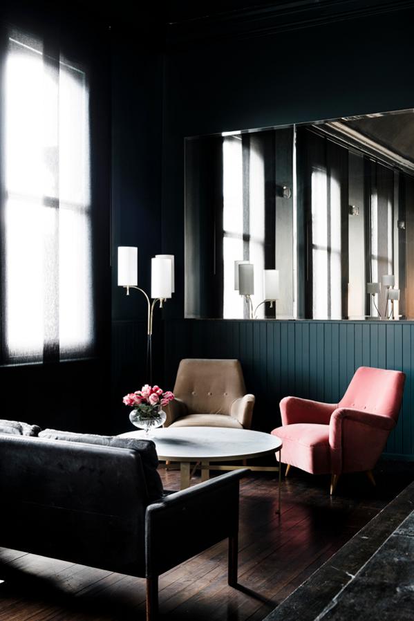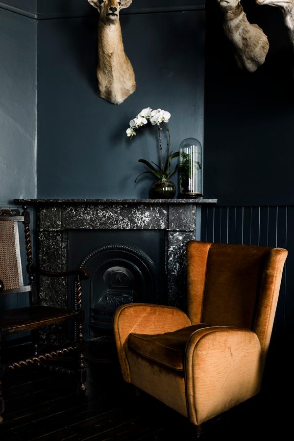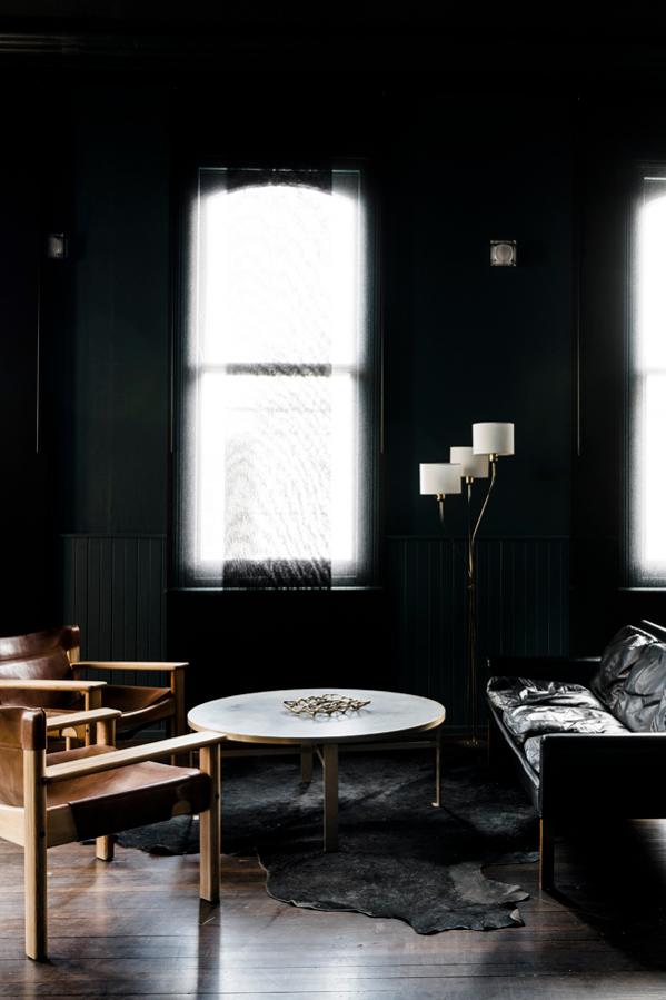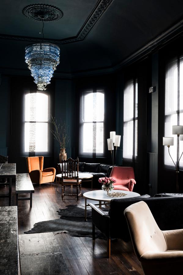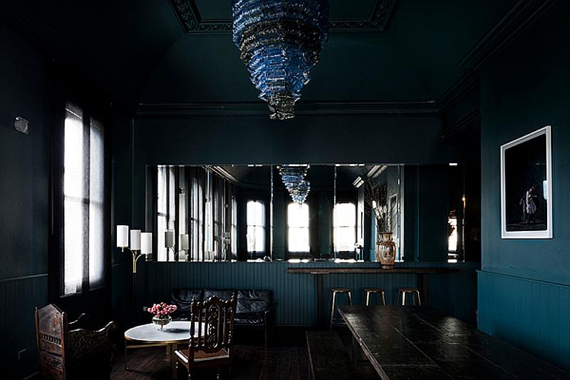 Velvet, leather, brass, aged wood and murano glass. A mid century riff with Scandi classics sits with Elizabethan revival. Wrapped round and round with a dark and moody paint job. A chiaroscuro clash between scantily skimmed windows and the darkest blue walls. The Wolf Upstairs Events Space by Meme of Melbourne. Spurn the noon day sun and meet me for a drink.