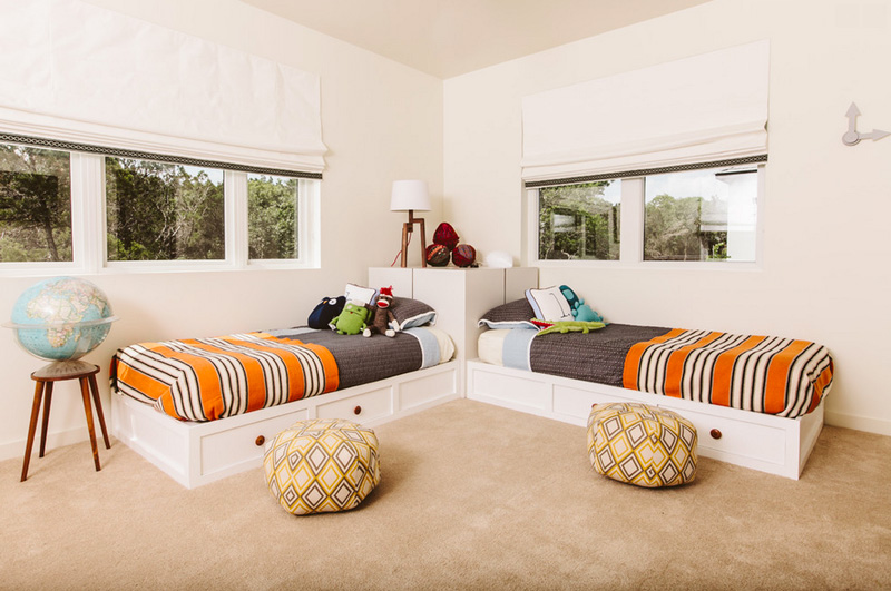 Debbie Baxter of Texas-based Baxter Design Group was responsible for the decor in this beautiful new construction home. She calls it Malibu-inspired but I see much more mid-century modern going on here. Whatever you want to call it, the organic colour scheme keeps the decor timeless and easy-going, and the home is cozy and looks perfect for entertaining. I will be out lounging by the pool if you are looking for me. 😉