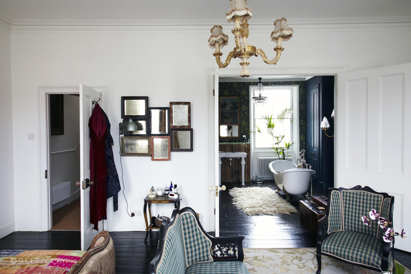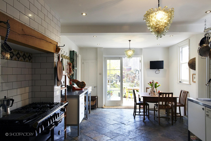 Dare to go bold. This three story Victorian home in London is about as quirky and eclectic as they come. A very random assortment of furnishings and artwork, some creative uses for wallpaper, some really beautiful lighting and an Ikea kitchen within a structure filled with original detail makes me love this. I could spend an weekend here rearranging and dreaming…. Location home available via Shoot Factory