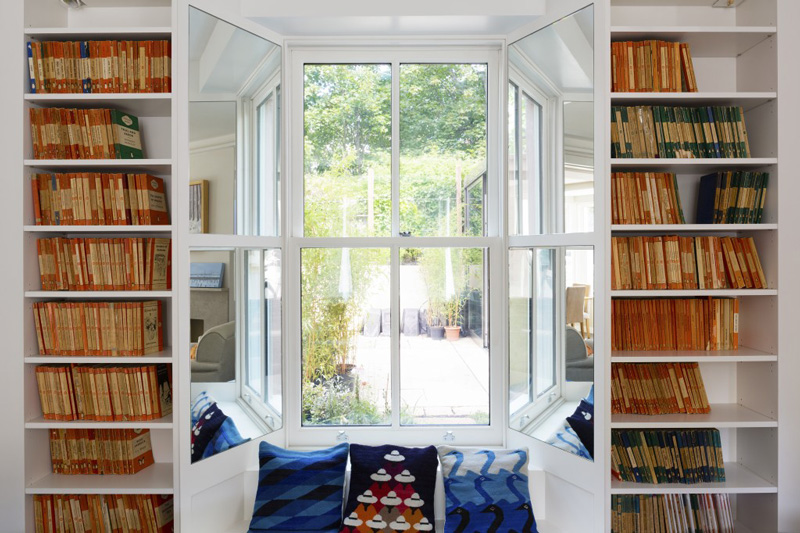 This is a fantastic idea – build some bookcases on either side of a window and you end up with storage, a window seat and throw in some mirrors and trim and you have the cutest little reading nook in a ‘bay window’. Via Granit.