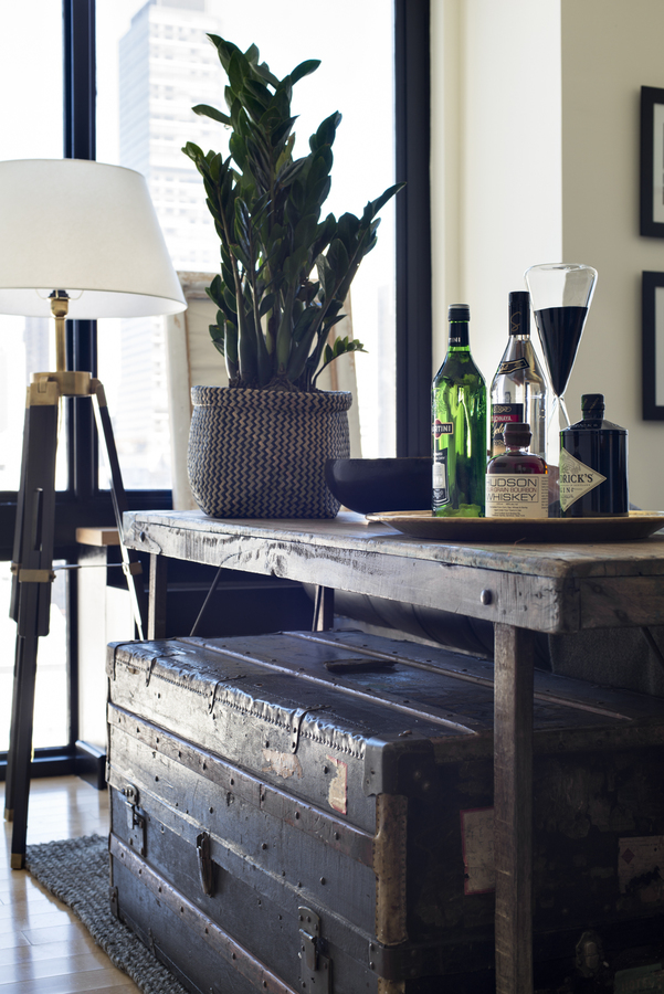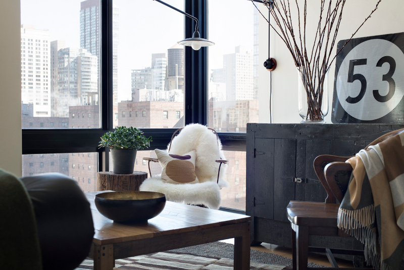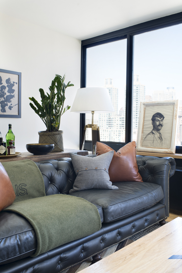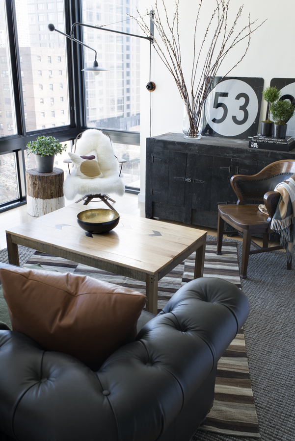 Vintage masculine. Rustic meets Manhattan manly. Why am I trying to put a label on it when it already tells a story we can all understand? It’s an eclectic mix of country in the city with a hint of industrial, found object and gentleman’s den. Leather and wood, wool and metal. Layers of texture with stories to tell. West 60th Street by Manhattan-based BHDM Design.