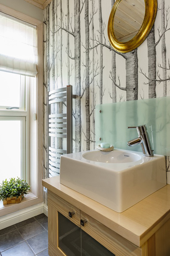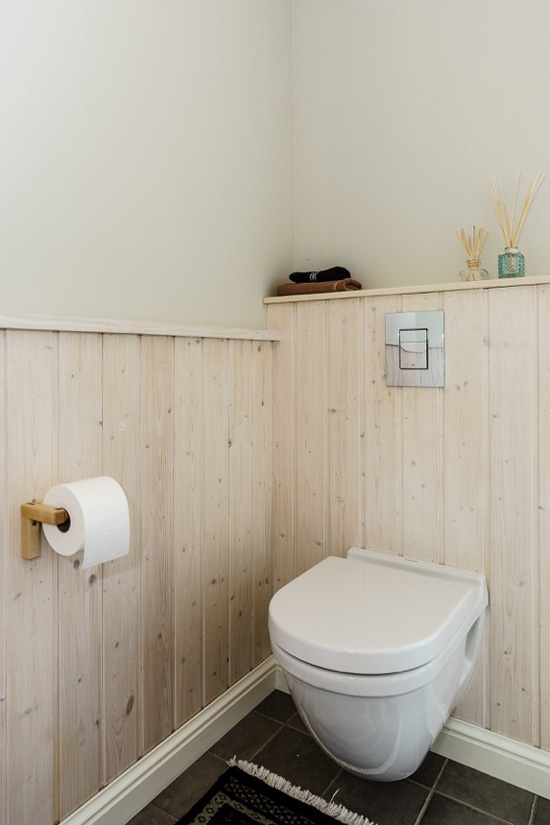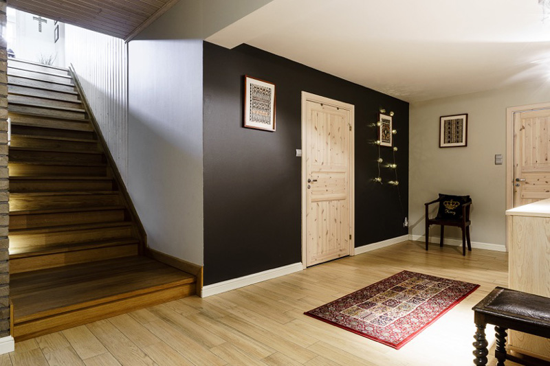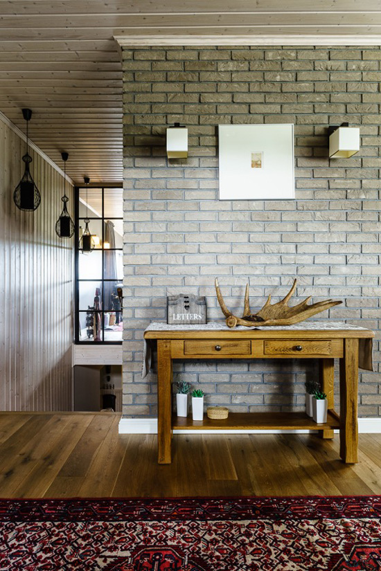 Thanks to Polish interior designer Lucyna Kołodziejska for sending in photos of her latest project – her friends’ country home near Gdańsk. It has many features that are favourites of mine – exposed brick, wood paneling (check out the ceiling!), black accent walls, and the hardwood on the main floor is a gorgeous colour. Great job once again Lucyna!