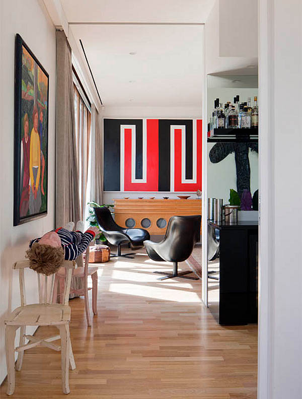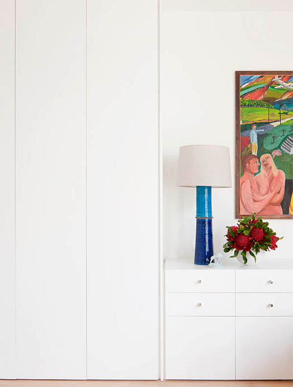 Fabulous artwork, furniture classics, freaky little figure perched on two chairs. A light touch was employed by Melbourne design firm Molecule when reworking this South Yarra apartment. Walls were removed or added but not everything was ripped or remodelled, bespoke joinery added and a minimalist shell designed to showcase an amazing contemporary art collection. I wouldn’t change a thing… except maybe that freaky little figure perched between two chairs.