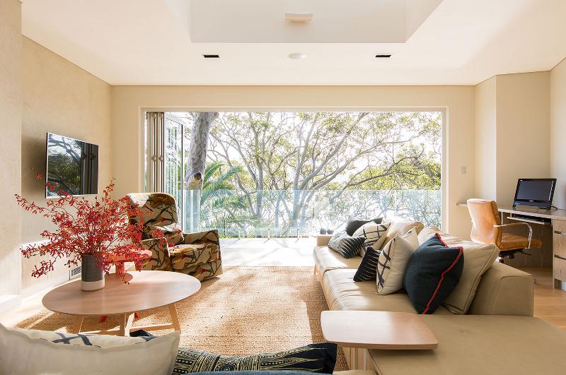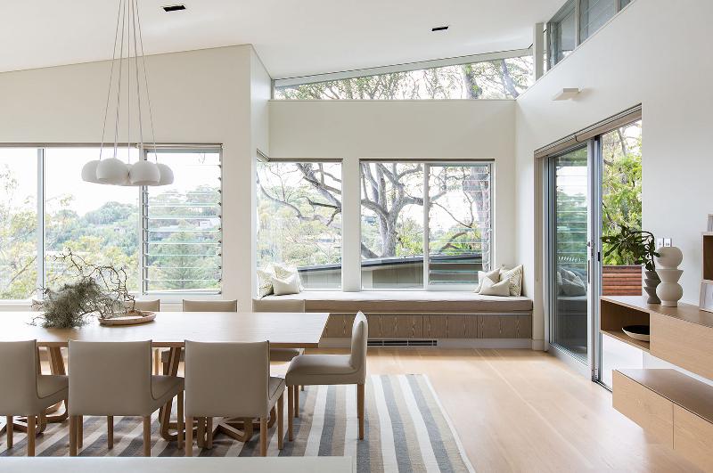 High amongst the tree tops is this calm oasis. Earthy, natural tones and textures create a peaceful setting for this contemporary home with interiors by Sydney-based Designers In The City. It would be easy to think that the rooms need scream to stand their ground against the stellar views but the designers instead have created a simple luxury the soothes and cocoons.