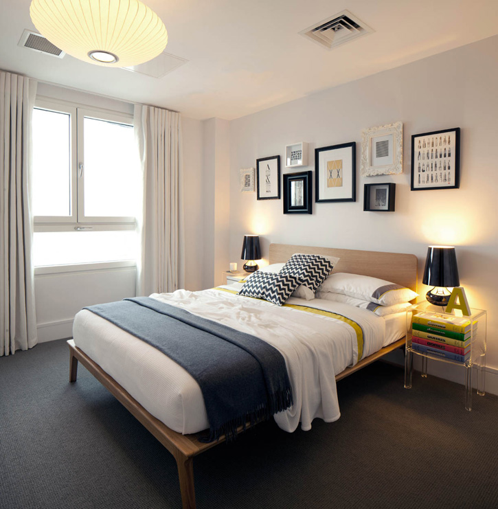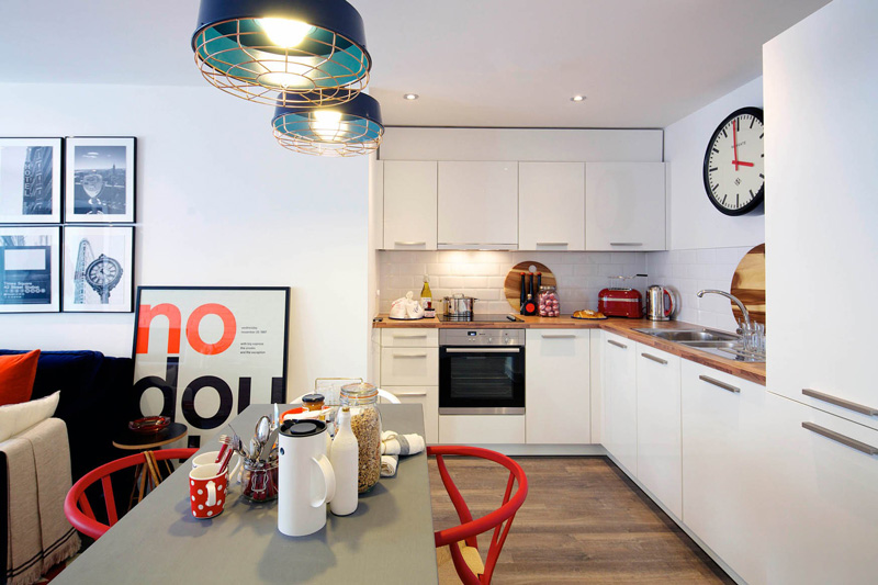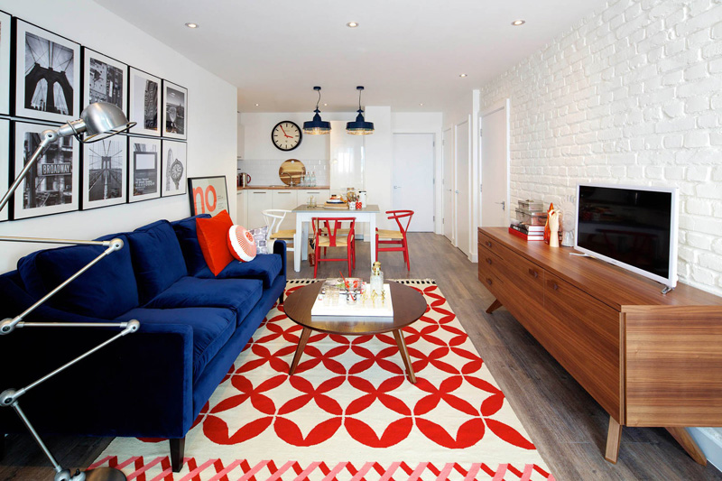 What a fun apartment this is! It is a 2 bedroom show apartment that was designed by London interior design and architecture firm Honky. It is quite ‘New York’ themed but for a show apartment, I think it is perfectly suited to attract urban dwellers. White painted brick, lots of graphic elements and industrial touches all add to the modern look.